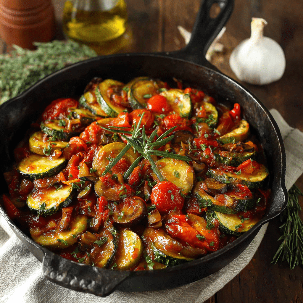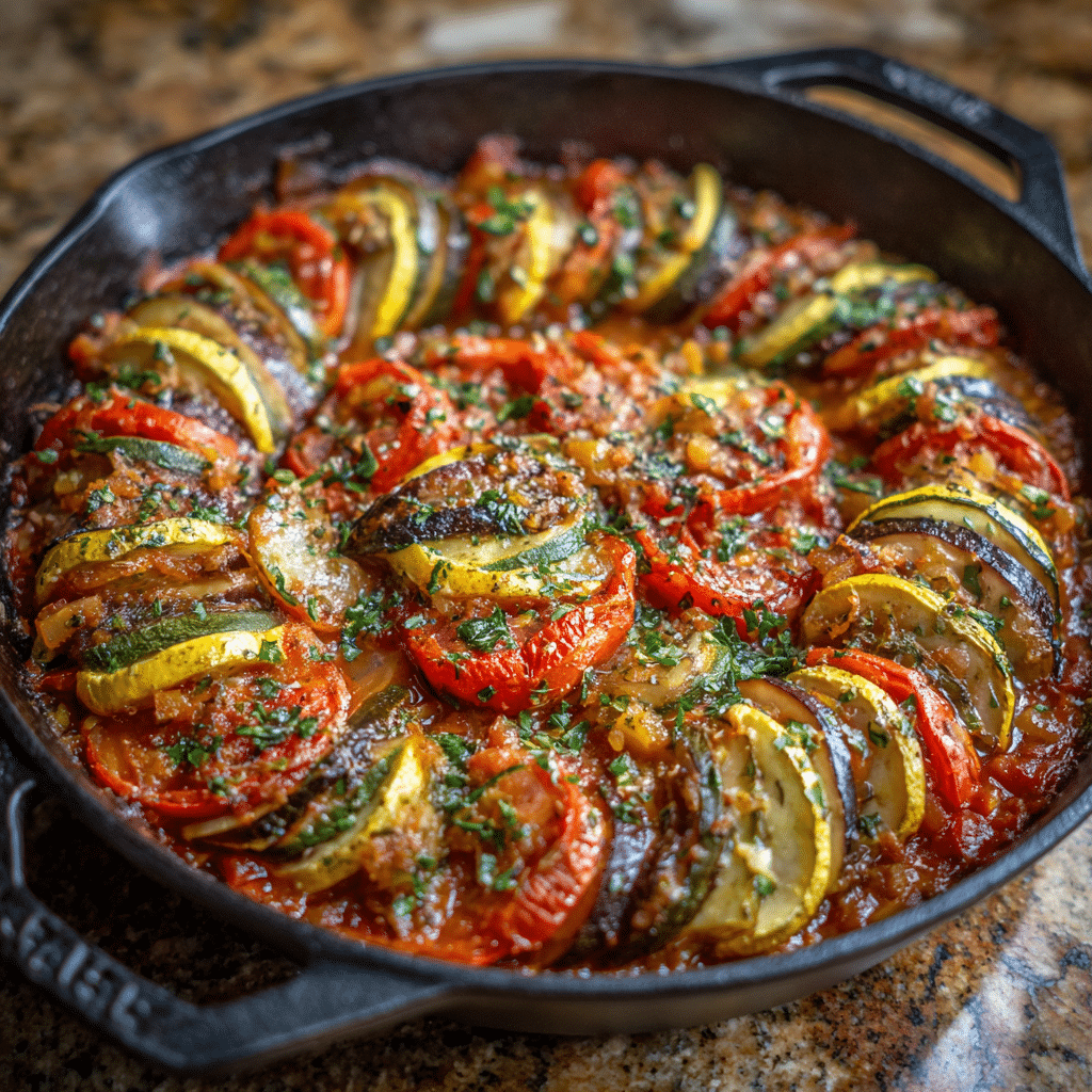 Authentic French Ratatouille is a rustic Provençal vegetable stew made with eggplant, zucchini, bell peppers, tomatoes, and fresh herbs slowly simmered in olive oil. Healthy, vibrant, and full of Mediterranean flavor.
