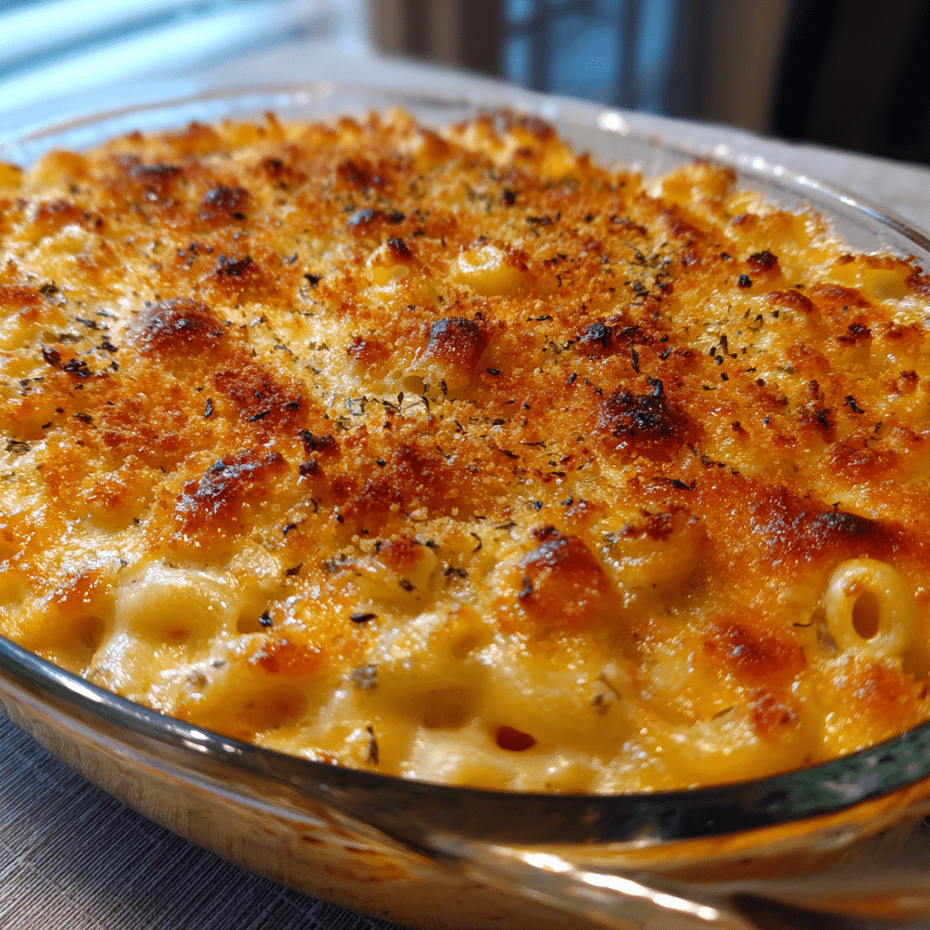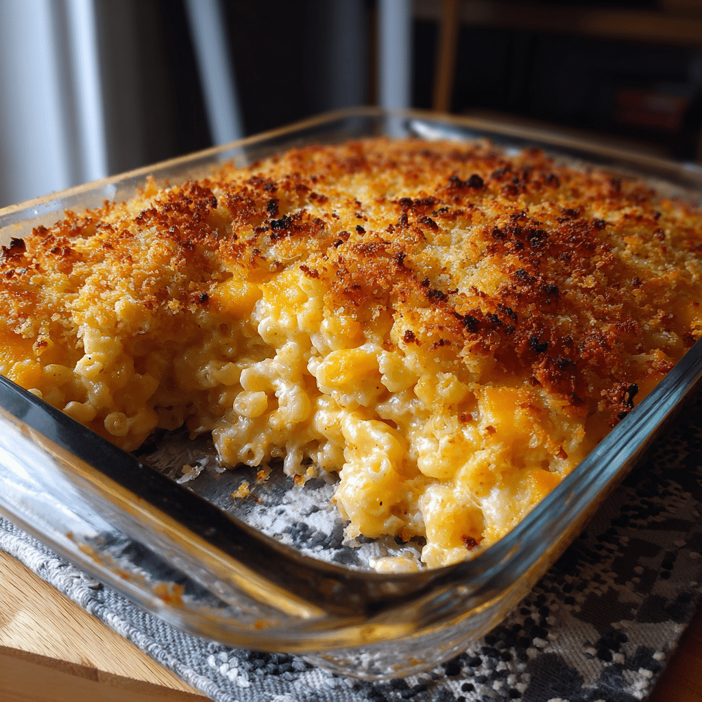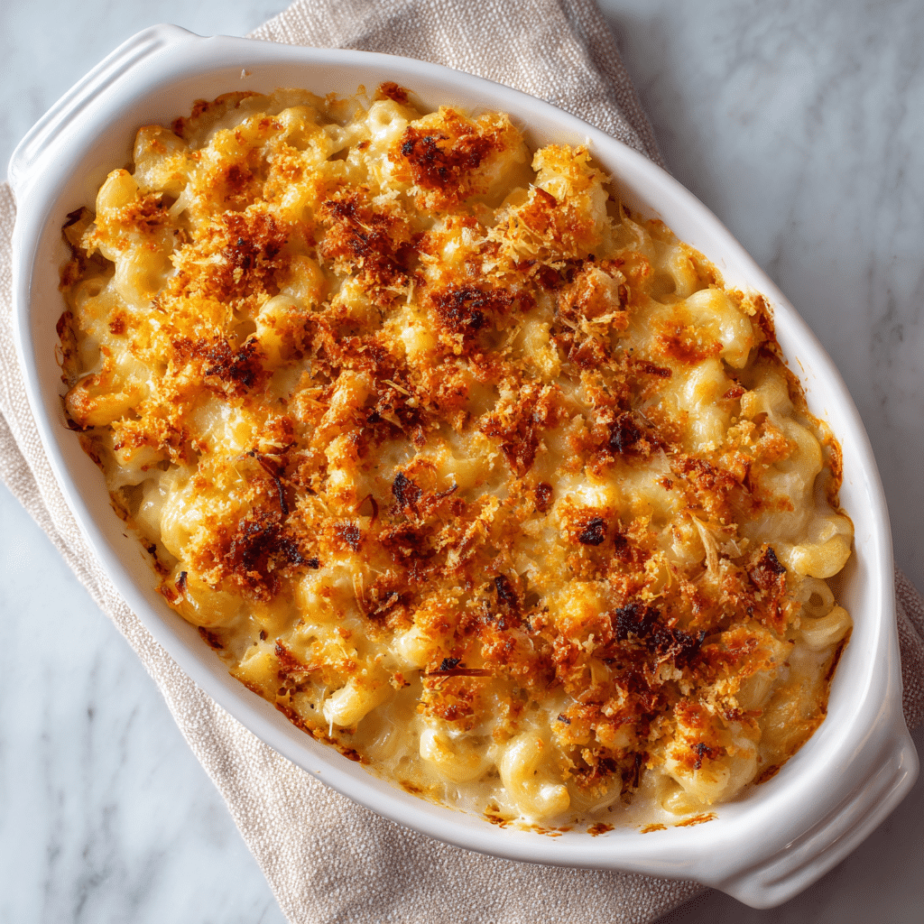The contrast between the soft, cheesy pasta and the golden crispy topping is what makes this recipe special. It’s not just mac and cheese. It’s a full experience.