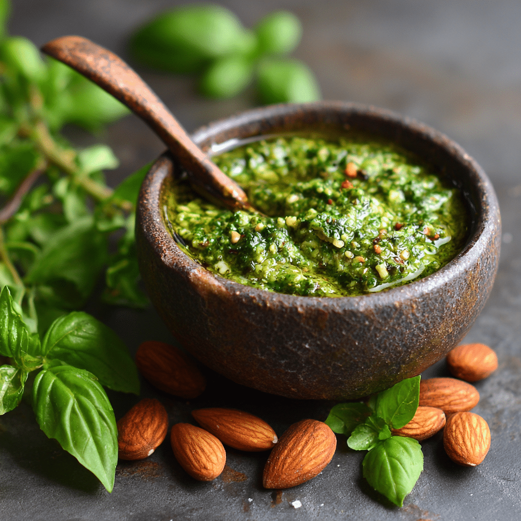 Lightly toasting the almonds enhances their flavor. For a dairy-free version, replace Parmesan with nutritional yeast. Store pesto in a sealed jar in the refrigerator for up to 5 days with a thin layer of olive oil on top to prevent browning. Freeze in ice cube trays for longer storage.