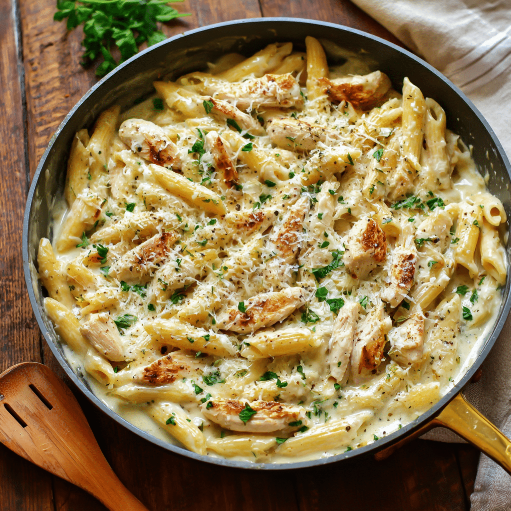Use freshly grated Parmesan for the smoothest sauce and best flavor. Do not boil the cream aggressively, as this may cause separation. Store leftovers in an airtight container in the refrigerator for up to 3 days. Reheat gently with a splash of milk or cream to restore creaminess. You can substitute shrimp for chicken or add steamed broccoli for variation.
