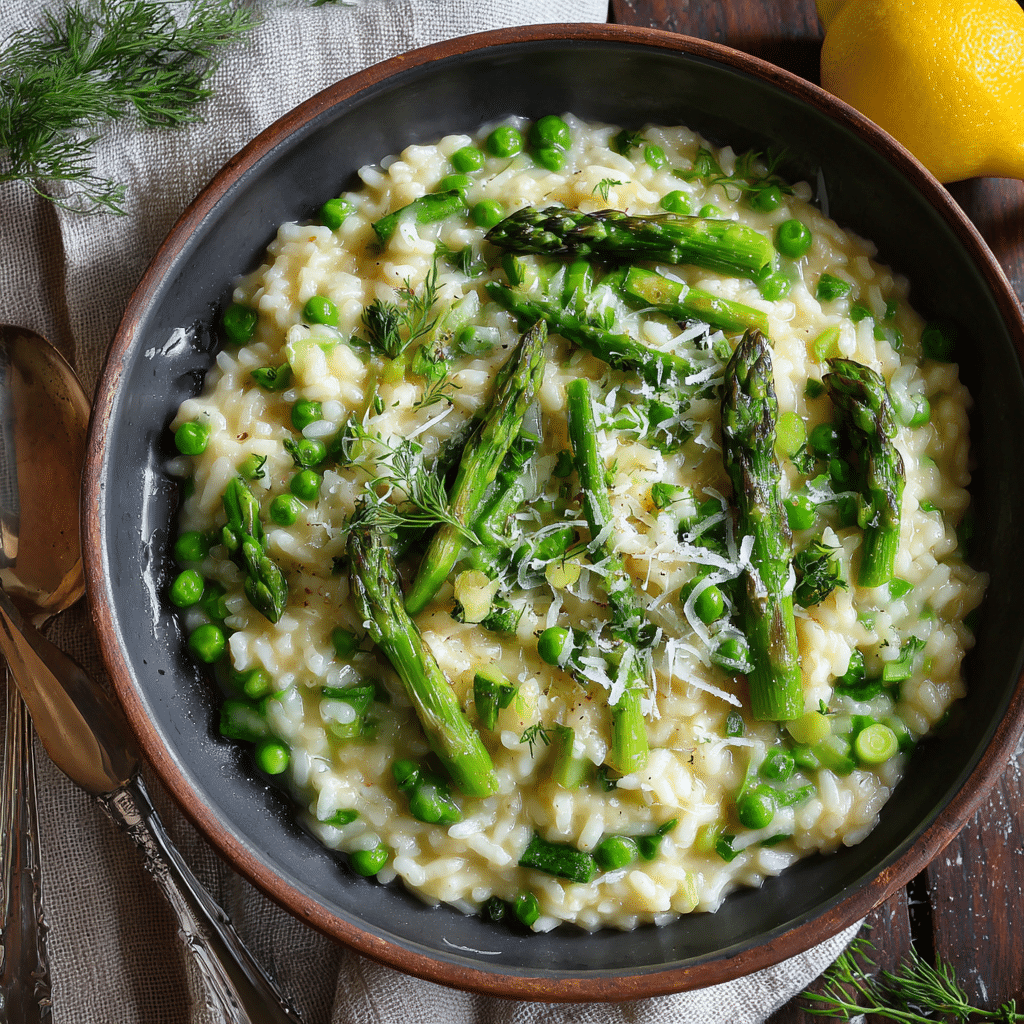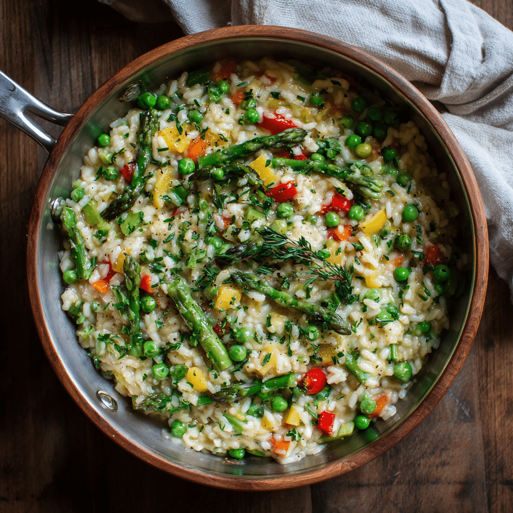 This Best Spring Vegetable Risotto features creamy Arborio rice cooked slowly with fresh asparagus, peas, zucchini, Parmesan cheese, and a touch of lemon zest. A bright and comforting seasonal dish perfect for spring dinners.