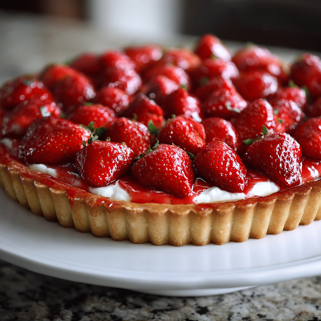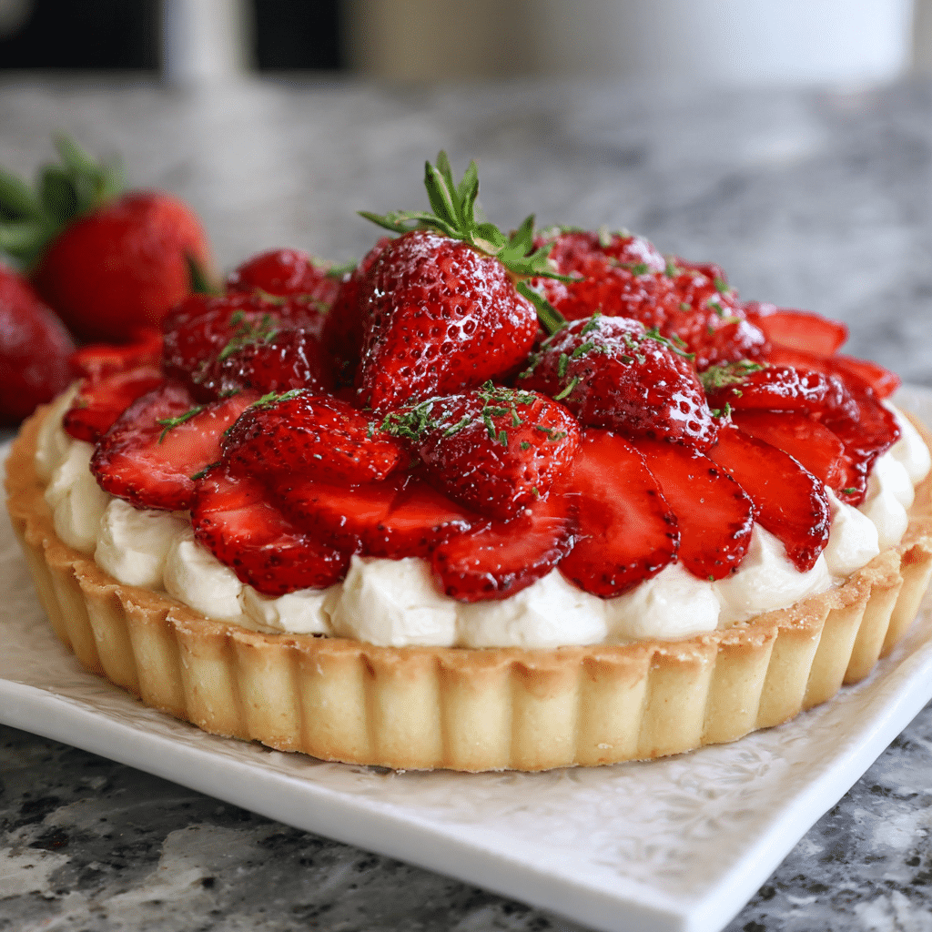 Use ripe, fragrant strawberries for best flavor. Chill tart before slicing for clean cuts. You can prepare crust and cream one day ahead and assemble before serving. Store refrigerated up to 3 days.