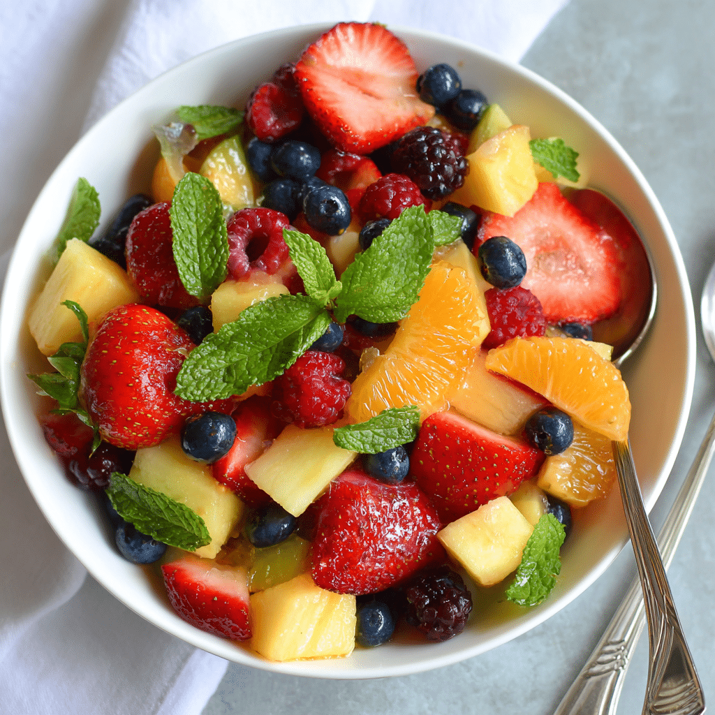 Best Summer Fruit Salad combines watermelon, strawberries, blueberries, pineapple, peaches, kiwi, and grapes tossed in a light honey-lemon dressing with fresh mint. This refreshing recipe celebrates seasonal fruit and requires no cooking. Chilling the fruit beforehand keeps it crisp and vibrant. The light citrus dressing enhances natural sweetness without overpowering it. Perfect for brunch, picnics, or summer dinners, this colorful salad brings freshness and balance to any table. Serve chilled and enjoy within two days for the best flavor and texture.