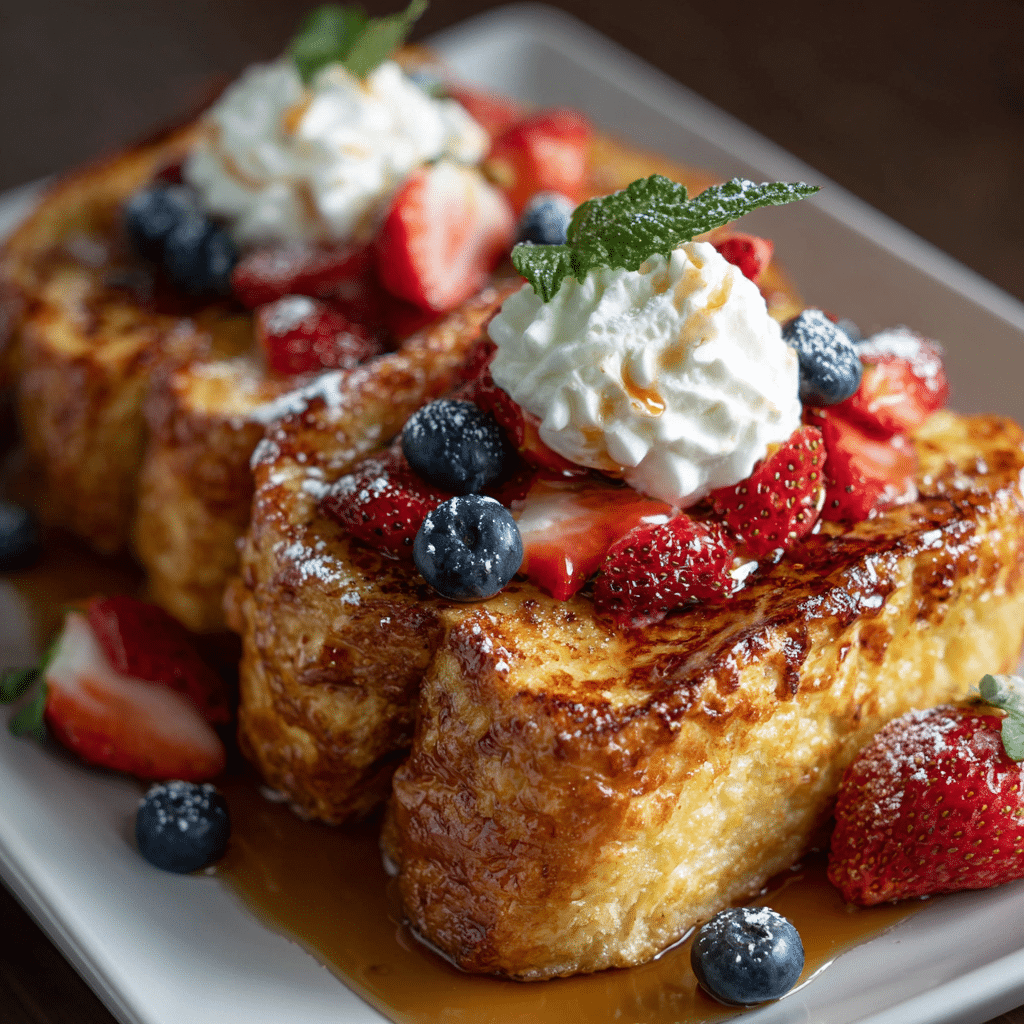 This Brioche French Toast recipe creates thick, fluffy slices with a rich custard center and golden buttery edges. Made with eggs, milk, cream, cinnamon, and vanilla, it’s the perfect brunch or weekend breakfast treat. Serve warm with maple syrup, fresh berries, and powdered sugar for a comforting homemade meal.