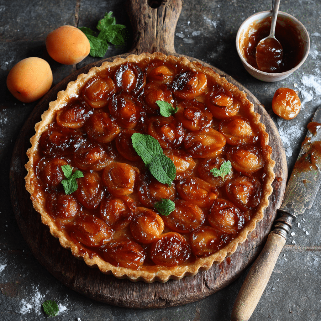For best results, use ripe but firm apricots so they hold their shape during caramelization. Peaches or plums can be substituted if apricots are unavailable. The tart can be made a day in advance and stored in the refrigerator; reheat gently in the oven before serving. Add sliced almonds for extra texture or serve with vanilla ice cream for an indulgent finish.