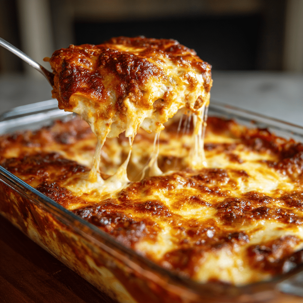 This Cheesy Lasagna Recipe features layers of tender pasta, rich homemade beef sauce, creamy ricotta cheese, and melted mozzarella baked until golden and bubbly. Perfect for family dinners and gatherings, this comforting classic delivers bold flavor, hearty texture, and irresistible cheesy goodness in every bite.