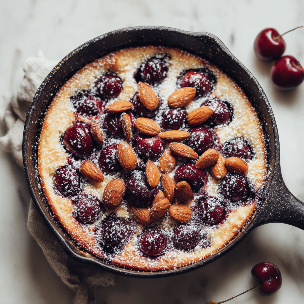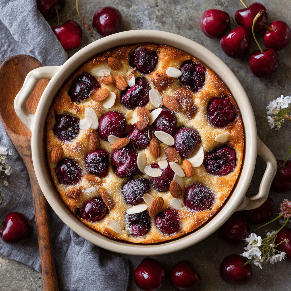 Cherry Clafoutis with Almond Flour is a soft, rustic French-inspired dessert made with sweet cherries, creamy custard batter, and naturally gluten-free almond flour. This easy baked cherry dessert has a delicate nutty flavor, a golden top, and a tender center that melts in your mouth. Perfect for summer gatherings, brunch, or an elegant yet simple family dessert.