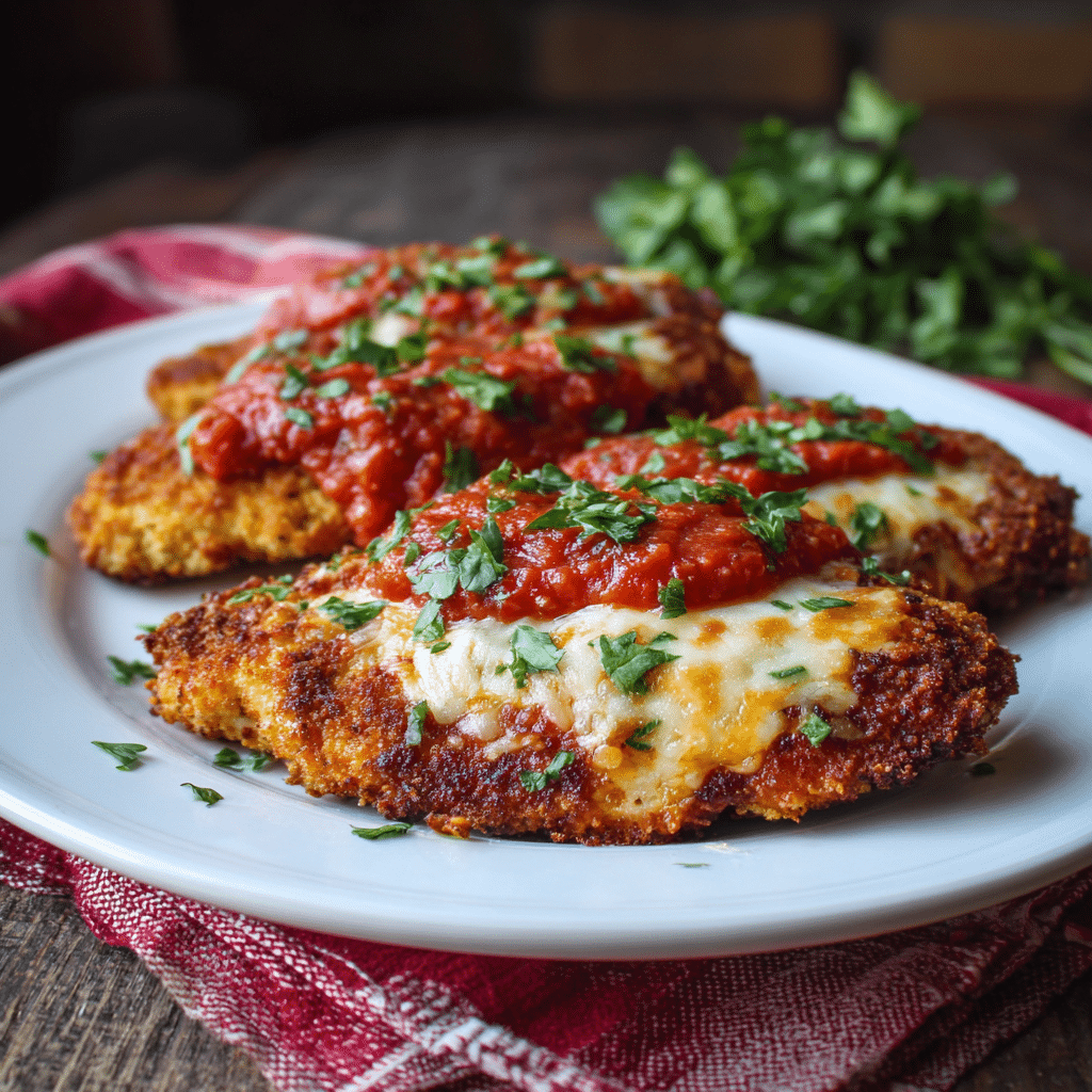 Pound the chicken lightly for even cooking. For a lighter version, bake the breaded chicken at 200°C (400°F) for 20 minutes instead of frying. Prepare the marinara sauce a day ahead for deeper flavor. Store leftovers in the refrigerator for up to 3 days and reheat in the oven to maintain crispiness.