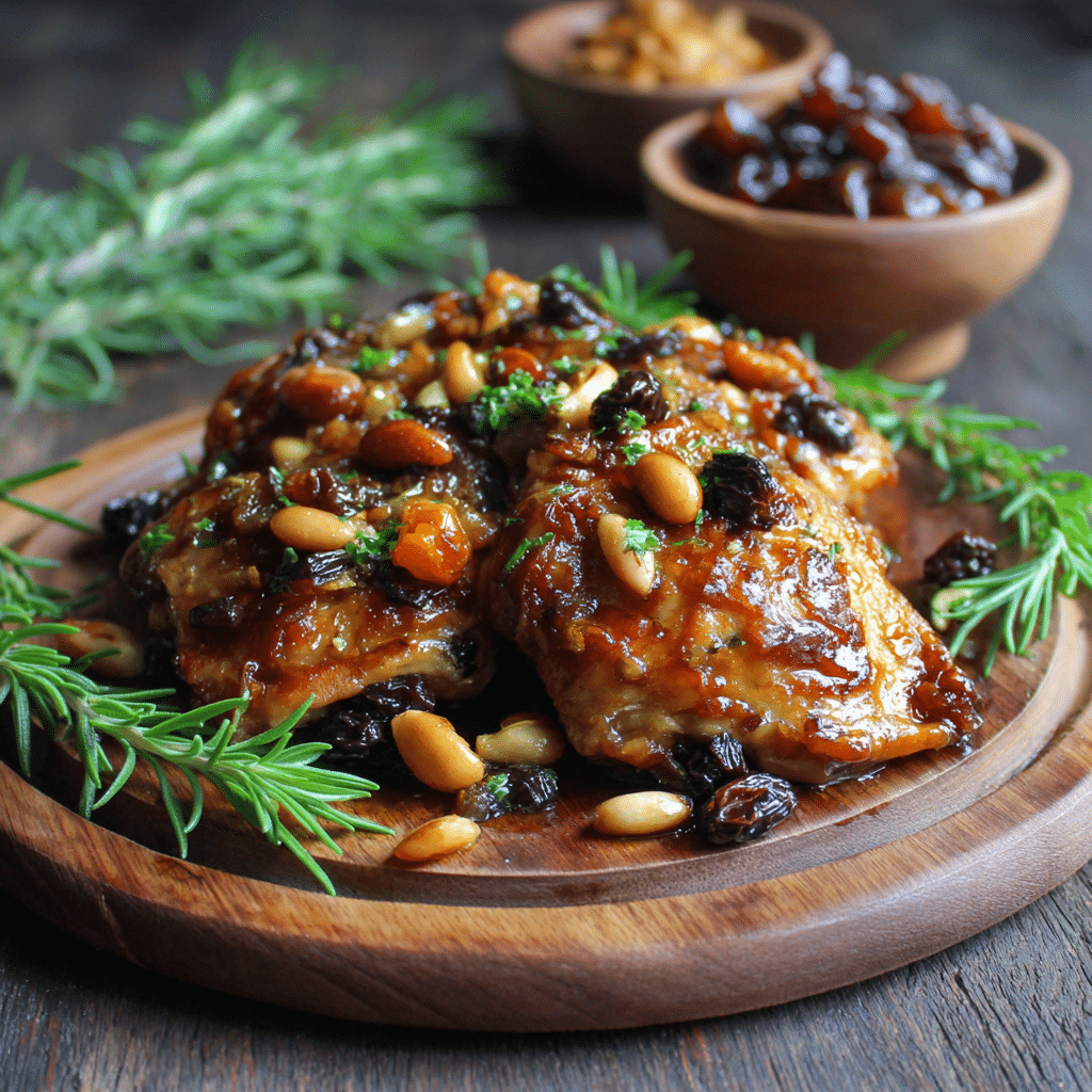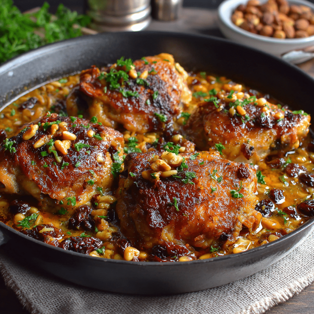I love this dish because it feels balanced in a way that’s hard to explain until you taste it. The chicken turns golden and tender, the raisins soften into little pockets of sweetness, and the pine nuts bring a gentle crunch that makes every bite interesting.