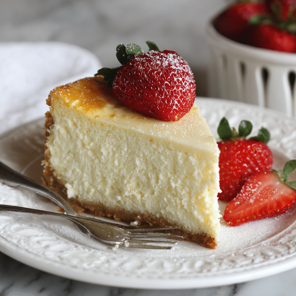 This Classic Cheesecake Recipe features a buttery graham cracker crust and a rich, creamy vanilla filling baked gently in a water bath for a perfectly smooth texture. A timeless dessert ideal for celebrations or family gatherings.