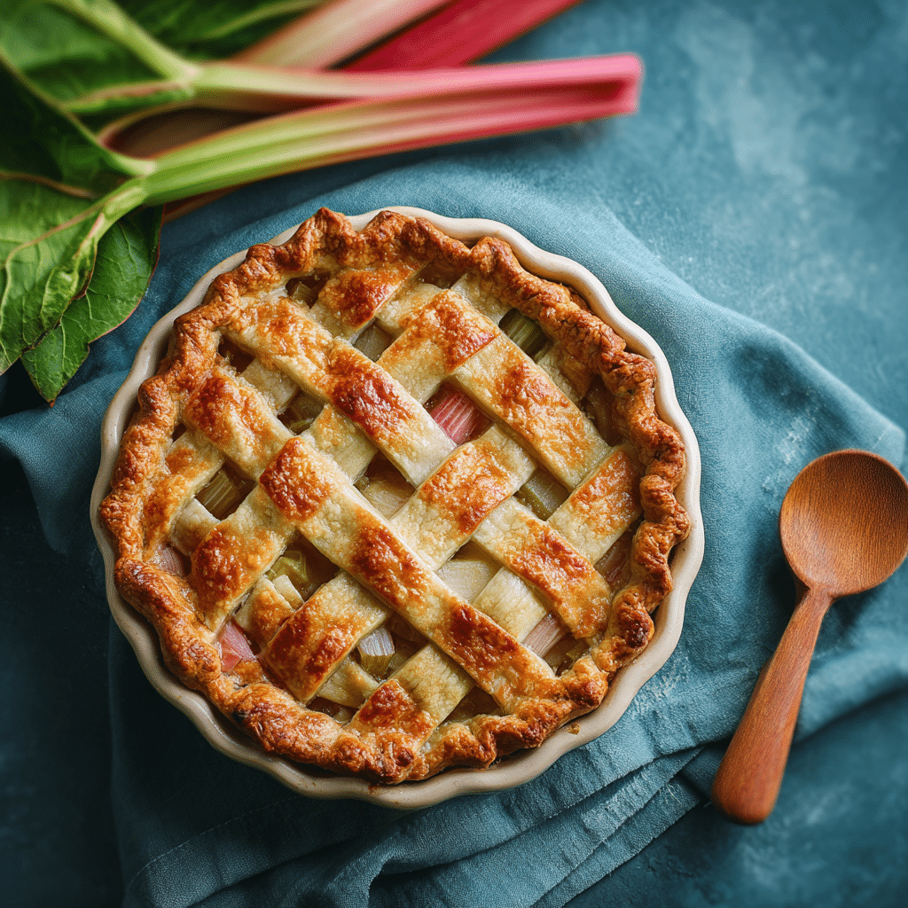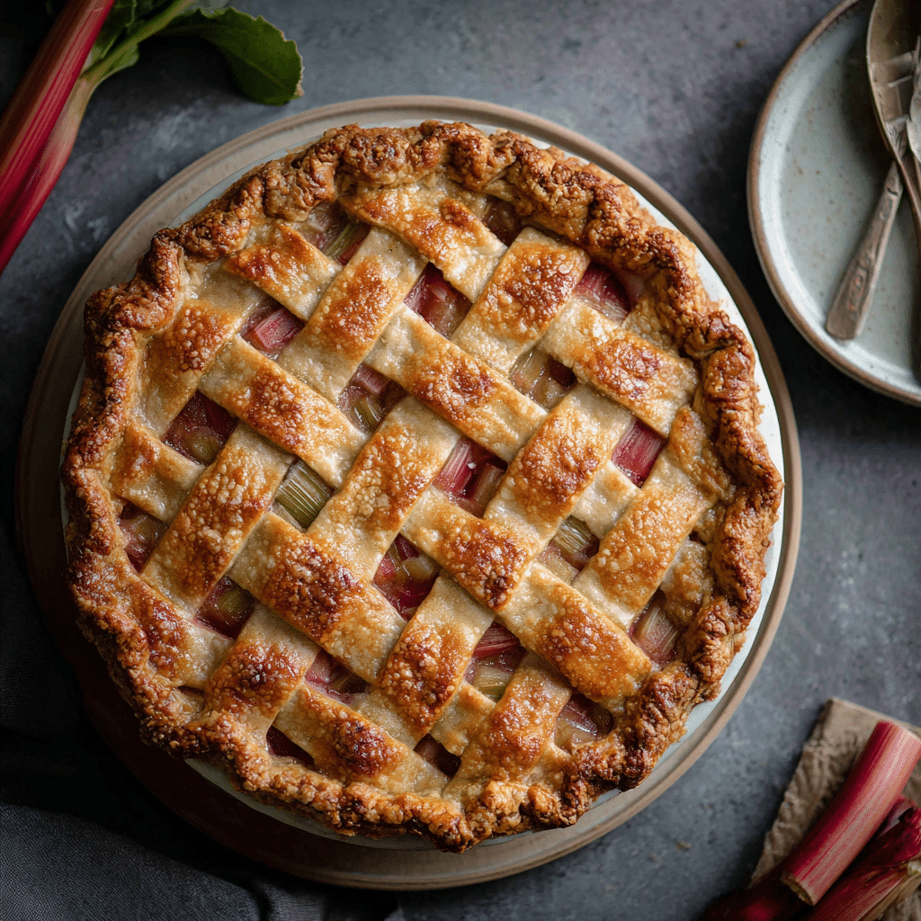 This Classic Rhubarb Pie features a flaky homemade butter crust filled with sweet and tangy fresh rhubarb. Baked until golden and bubbling, this traditional spring dessert balances bold flavor with comforting sweetness.
