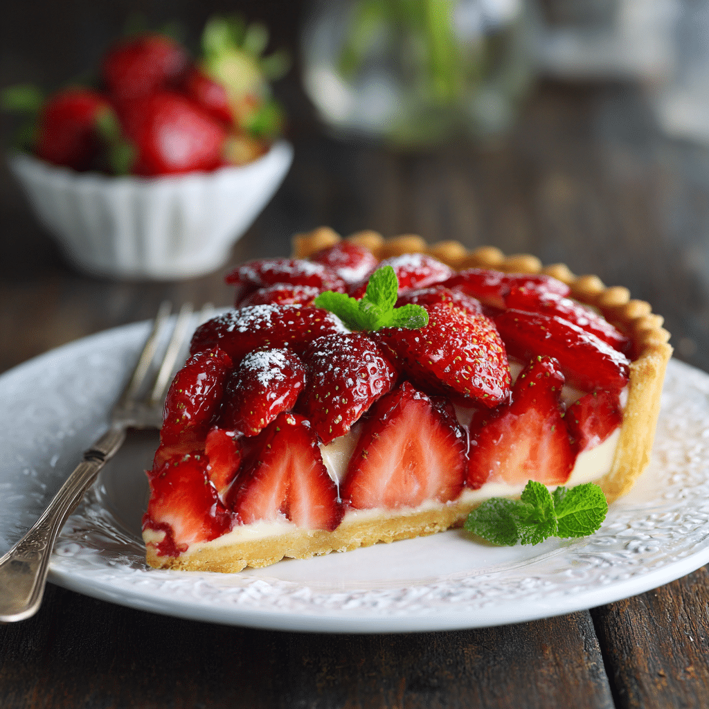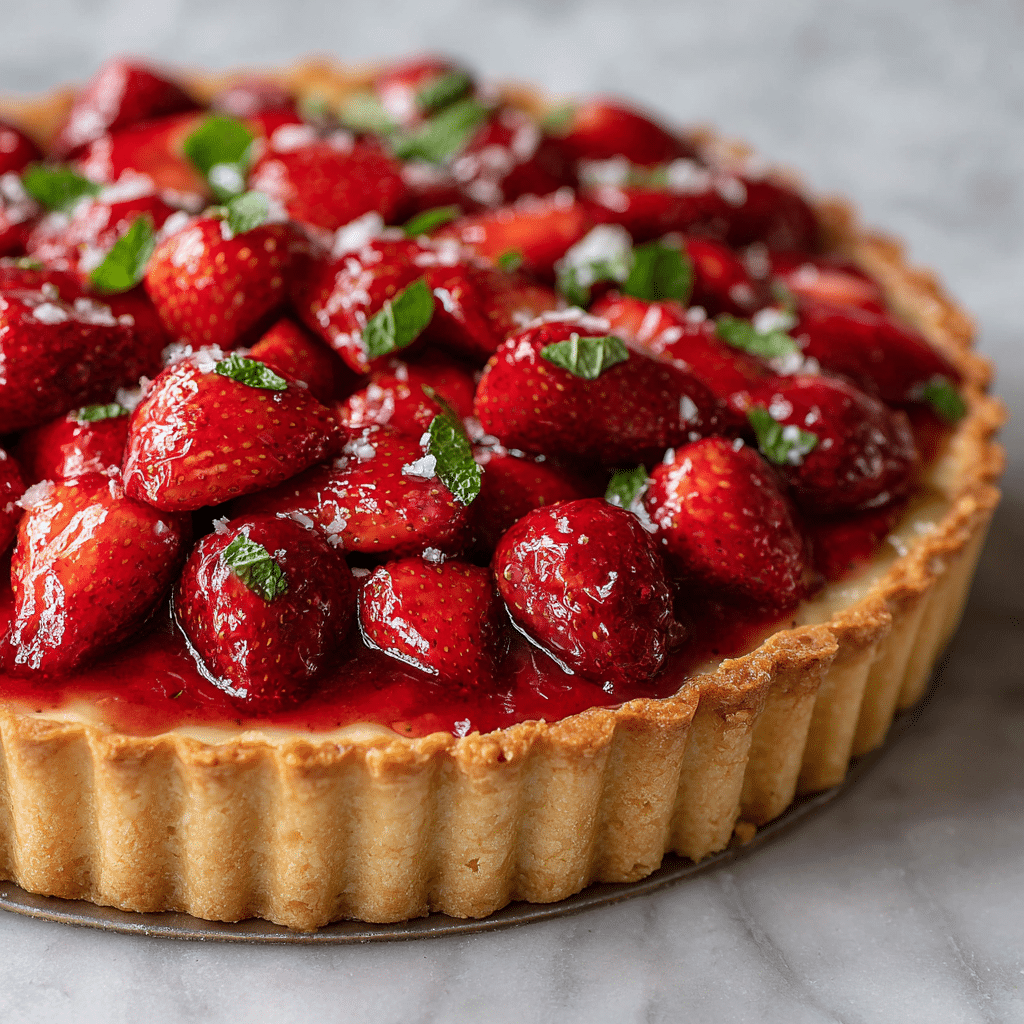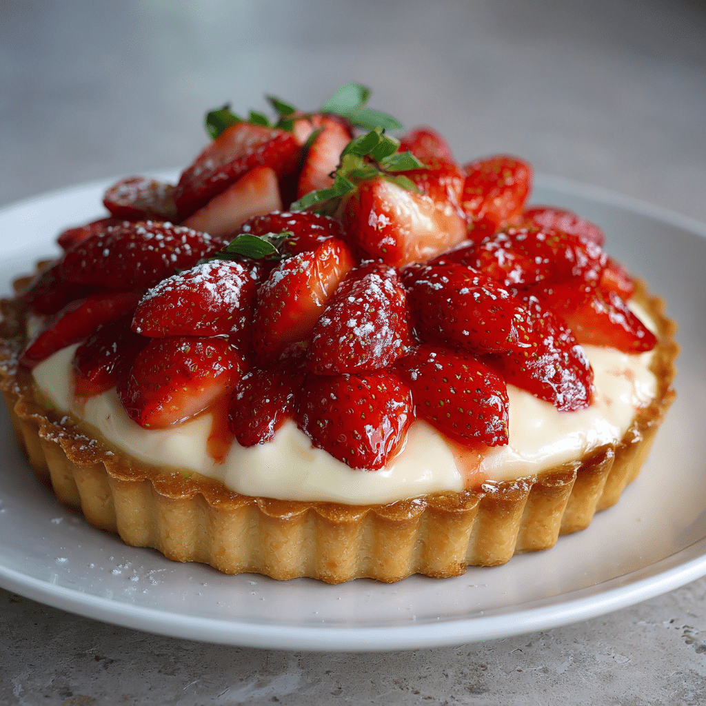 This Classic Strawberry Tart features a buttery homemade crust, creamy vanilla pastry filling, and fresh glossy strawberries. I bake the crust until golden, prepare a smooth pastry cream, and arrange sweet strawberries beautifully on top. I brush them with warm apricot glaze for shine. This tart feels elegant but remains simple and comforting. It works perfectly for spring gatherings, afternoon coffee, or family celebrations. I always use fresh, fragrant strawberries for the best flavor. Store in the refrigerator for up to three days and serve slightly chilled for the perfect texture and taste.