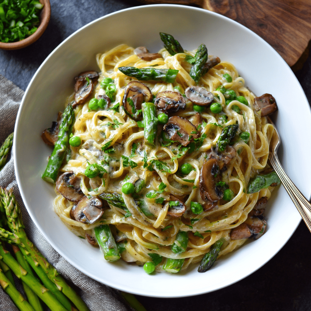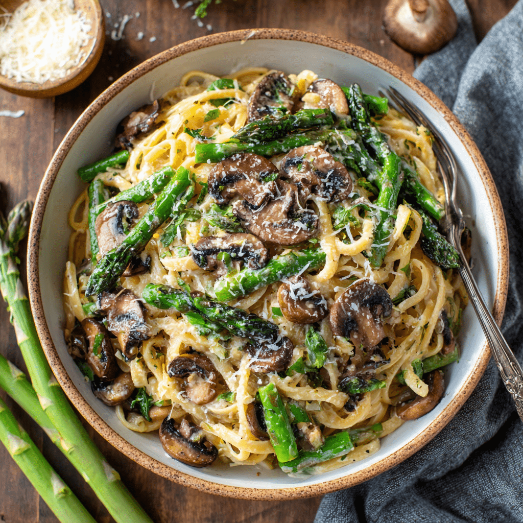 This creamy asparagus mushroom pasta is a comforting and elegant dish made with tender asparagus, earthy mushrooms, and a rich Parmesan cream sauce. Perfect for busy weeknights or special occasions, this easy pasta recipe delivers fresh flavors and creamy indulgence in every bite.