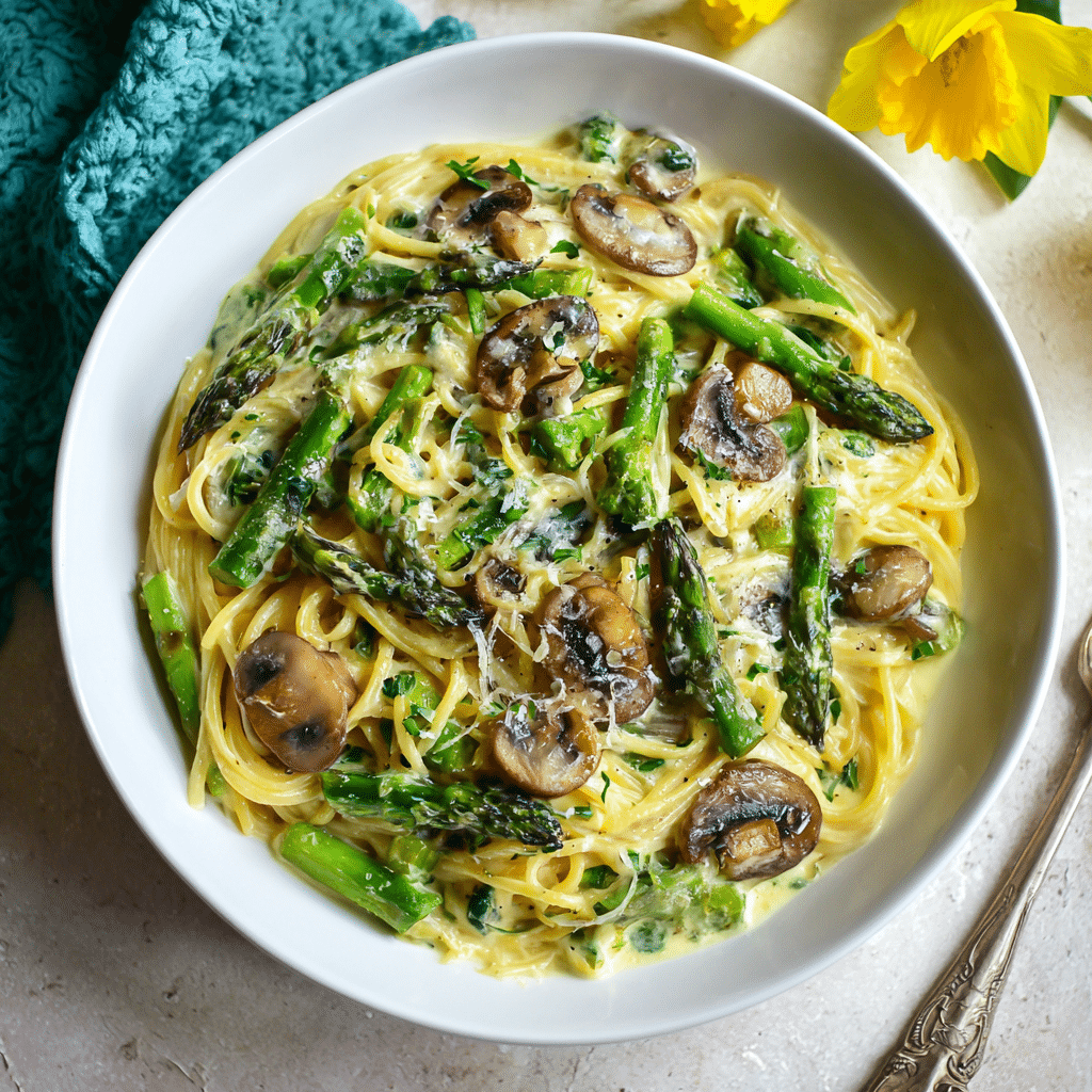 Creamy Asparagus Mushroom Pasta