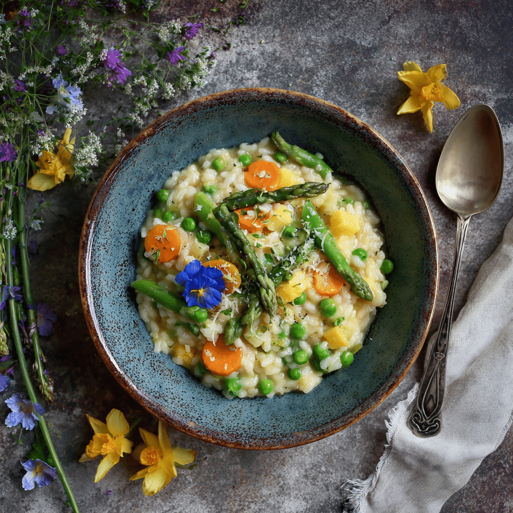 I prepare this Creamy Spring Vegetable Risotto when I want something elegant but simple. I cook it for my family, for my girlfriends during long lunch conversations, or even just for myself when I need a peaceful moment in the kitchen.
