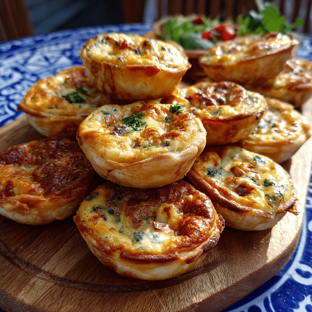 These Easy Mini Quiches combine eggs, milk, cheese, and vegetables baked in flaky pastry cups. I prepare them quickly using a muffin tin, making them perfect for breakfast, brunch, or snacks. The recipe allows endless variations, from spinach and feta to mushrooms or bacon. They bake in just 25 minutes and taste delicious warm or cold. Ideal for meal prep, parties, or lunchboxes, these mini quiches deliver comforting flavor in every bite.