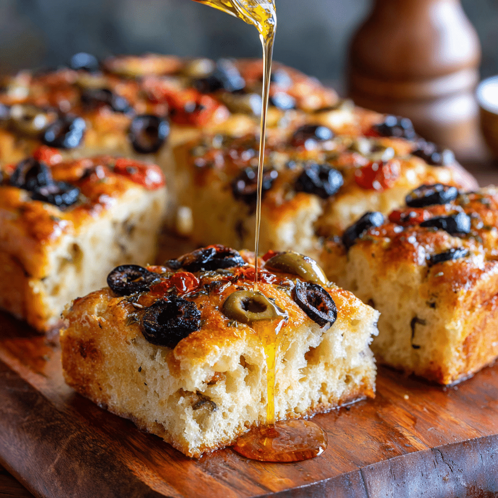 This Focaccia with Olives always reminds me of afternoons when my grandmother baked bread in her small oven. She taught me how to touch dough gently, how to wait patiently, and how to trust yeast. Bread teaches patience. Focaccia with Olives teaches joy.