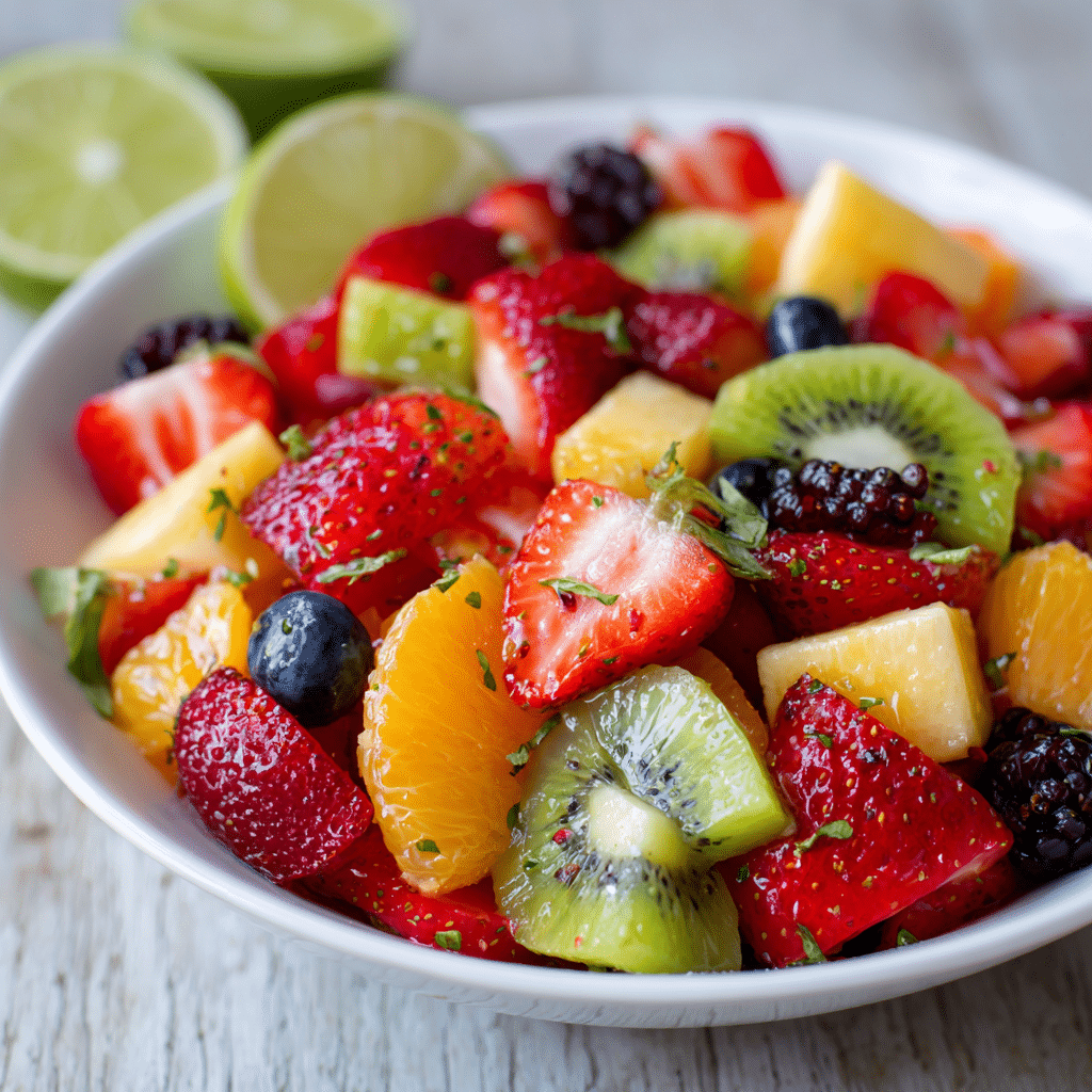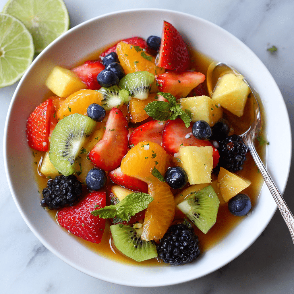 Fruit Salad with Honey Lime Dressing is a refreshing, colorful dish made with strawberries, blueberries, pineapple, kiwi, grapes, and watermelon tossed in a bright honey lime dressing. Fresh mint adds extra flavor and freshness. This easy recipe requires no cooking and comes together in minutes, making it perfect for summer gatherings, brunch, or a light dessert. The sweet and tangy dressing enhances the natural flavors of the fruit without overpowering them. Serve chilled for the most refreshing experience.