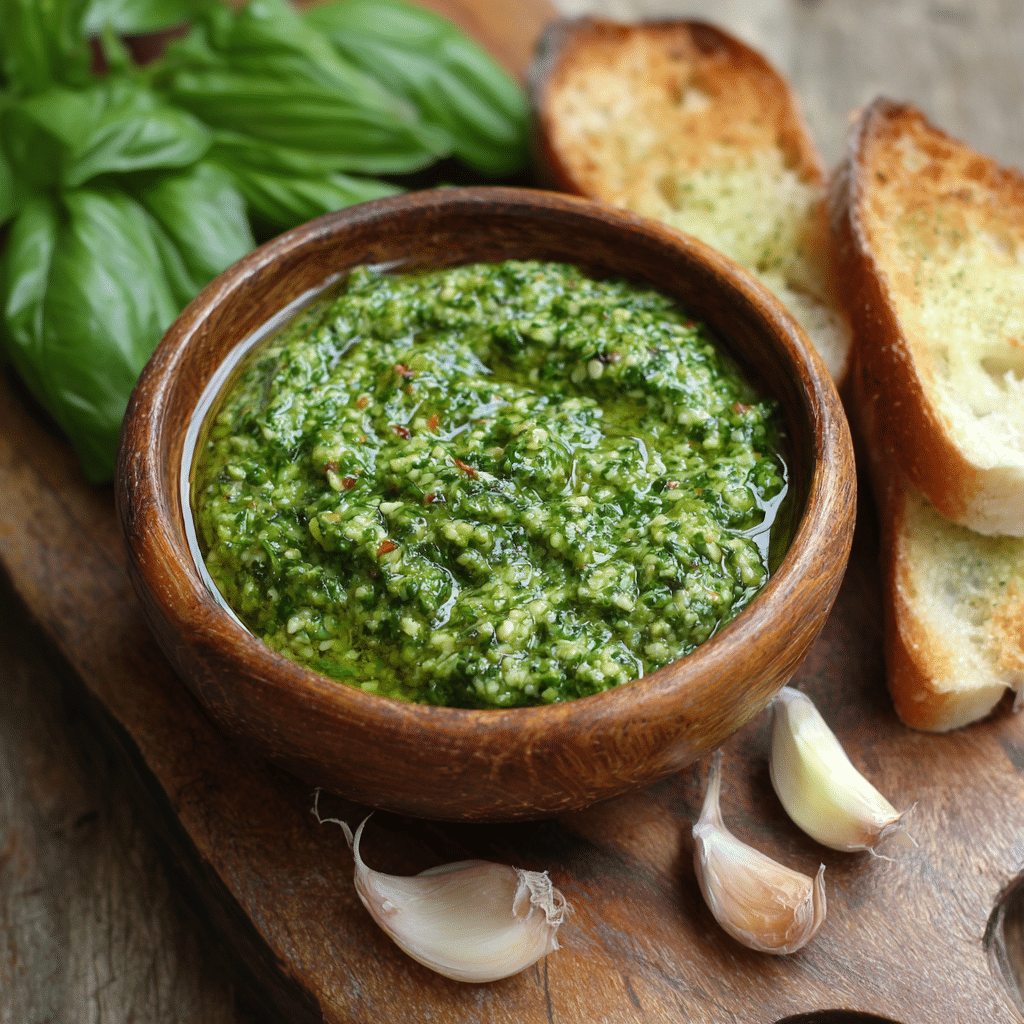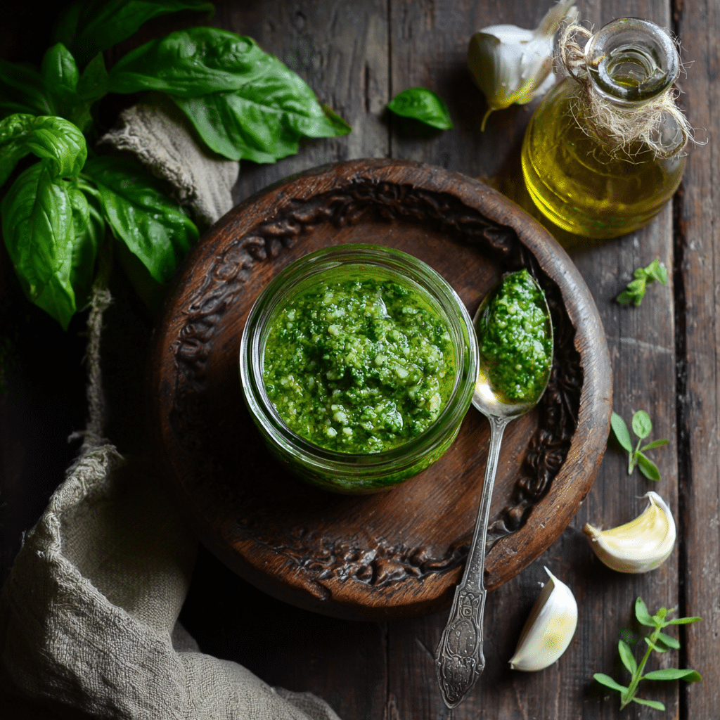 I love making Garlic-Free Basil Pesto because it feels light and elegant. It tastes fresh without overwhelming the palate. When I remove garlic, I allow the basil, olive oil, nuts, and cheese to shine in harmony.