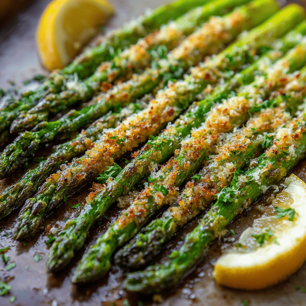 Garlic Parmesan Roasted Asparagus is a quick and flavorful side dish made with fresh asparagus, olive oil, garlic, and grated Parmesan cheese. The asparagus roasts in the oven until tender with slightly crispy tips, while the garlic and Parmesan create a rich savory flavor. This simple recipe takes only about 15 minutes to prepare and pairs perfectly with chicken, fish, or pasta dishes. A squeeze of fresh lemon juice adds brightness and balance. Healthy, delicious, and easy to make, this roasted asparagus recipe is perfect for busy weeknights or elegant dinners.