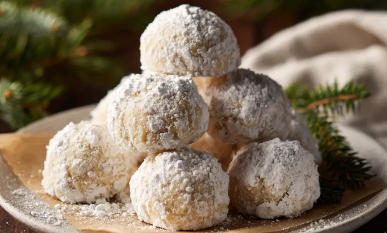 While the cookies are still warm, gently roll them in powdered sugar. Let them cool, then roll them again for that perfect snow-dusted look.