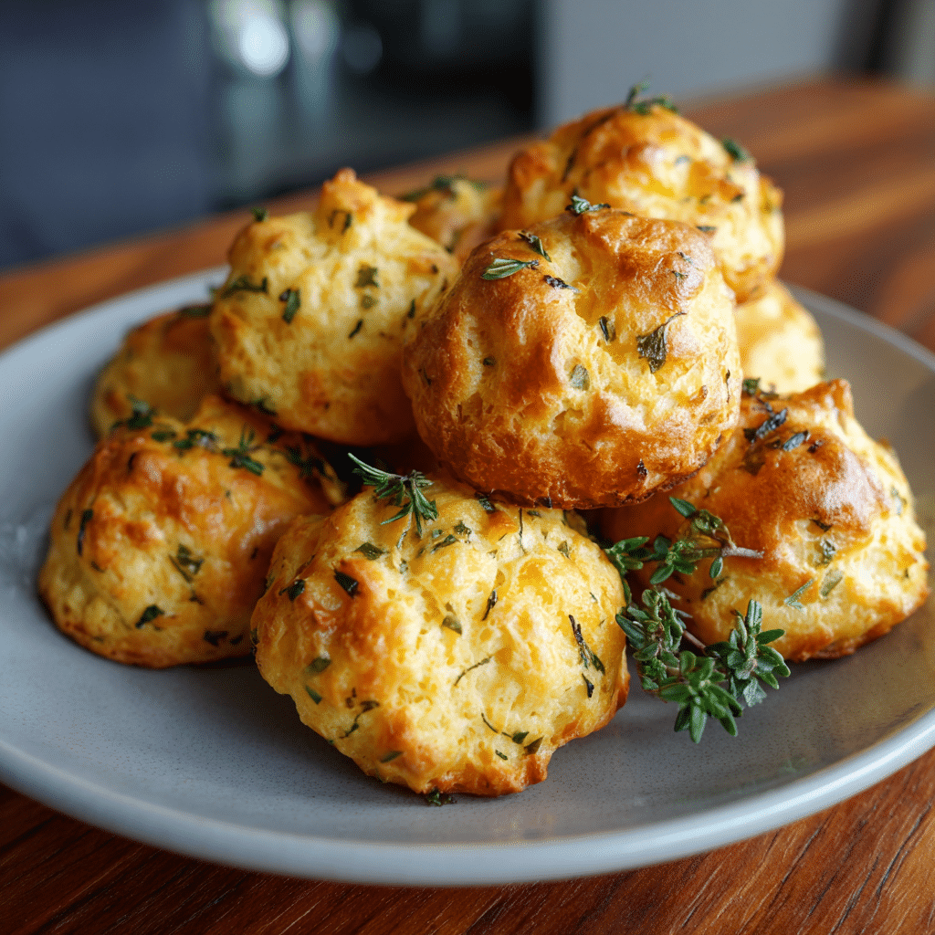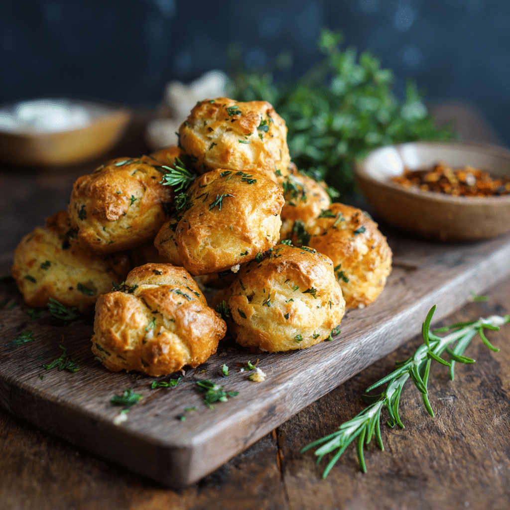 When I bake Gougères with Herbs, the aroma of melted cheese and fresh herbs fills the kitchen in the most beautiful way. The dough puffs up into golden clouds, crisp on the outside and soft on the inside. Every time I make Gougères with Herbs, I watch them carefully through the oven glass, waiting for that perfect rise.