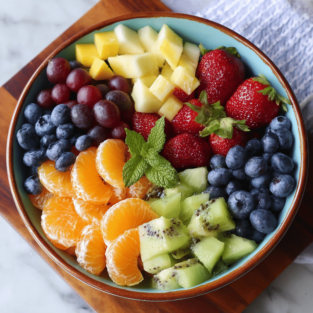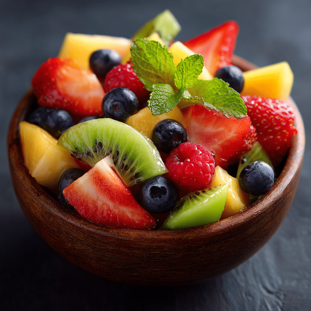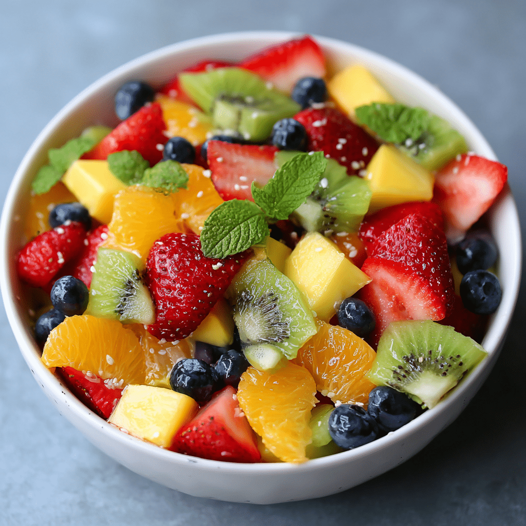 Use seasonal fruits for best flavor. Add mango, grapes, or pomegranate for variety. Serve with Greek yogurt for extra protein. Best enjoyed fresh within 1–2 days.