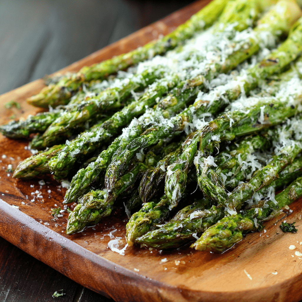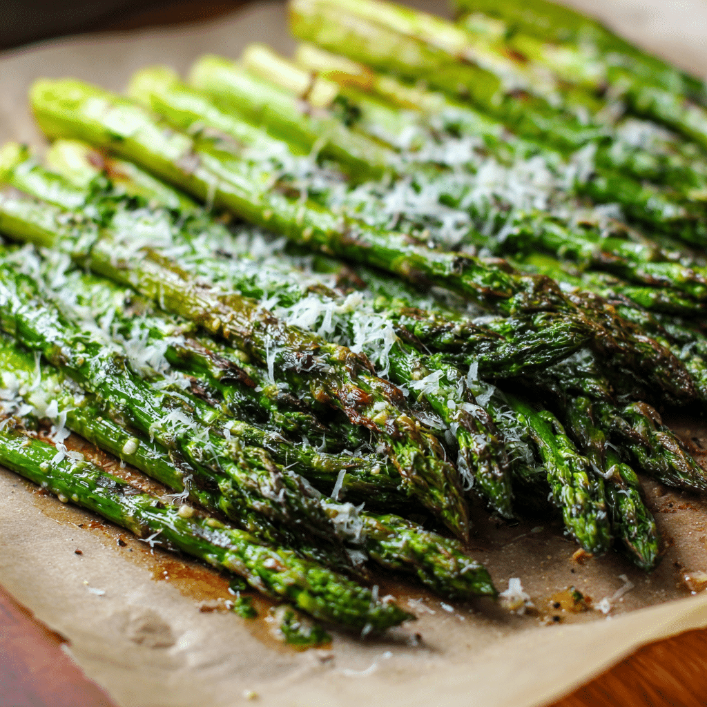 This Healthy Roasted Asparagus with Parmesan is a quick and delicious side dish made with fresh asparagus, olive oil, garlic, and grated Parmesan cheese. Roasting the asparagus at high heat creates tender stalks with slightly crispy edges. The Parmesan adds a savory flavor that makes the dish feel rich while still staying healthy. A touch of lemon zest or lemon juice brightens the flavor even more. The recipe takes only about 15 minutes to prepare, making it perfect for busy weeknights. It pairs wonderfully with chicken, fish, pasta, or roasted meats and turns simple vegetables into a flavorful and satisfying dish.