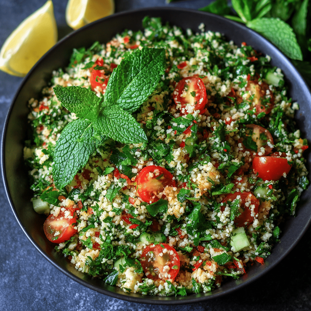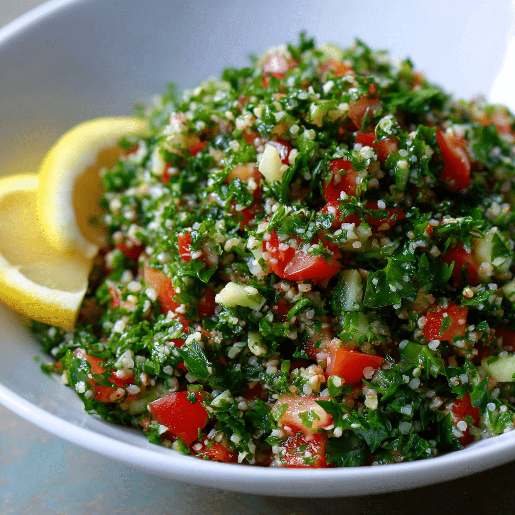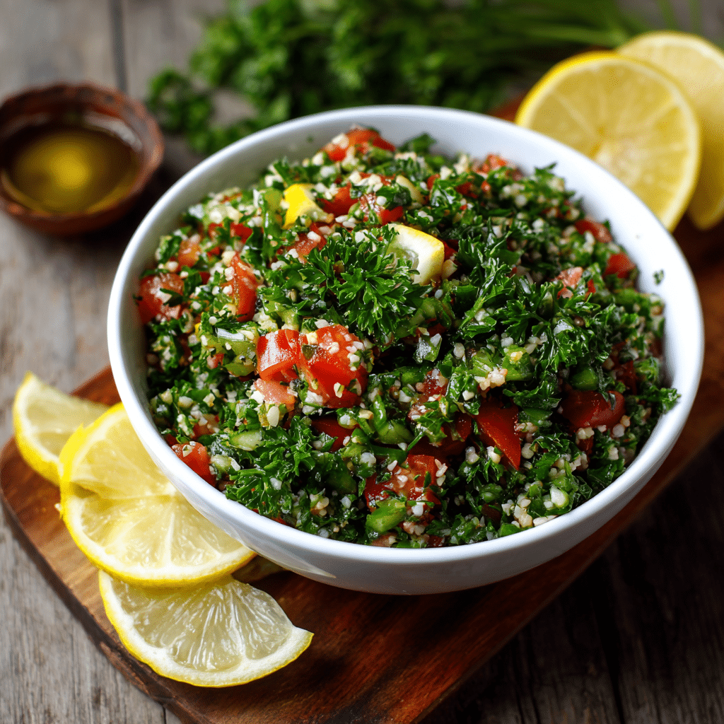 This Healthy Tabbouleh Recipe combines fine bulgur, fresh parsley, mint, tomatoes, green onions, lemon juice, and olive oil for a refreshing Mediterranean salad. Light, vibrant, and full of nutrients, it works perfectly as a side dish or healthy lunch. Ready in under 30 minutes, this easy tabbouleh recipe tastes even better after resting. Serve chilled and enjoy its bright, fresh flavor.