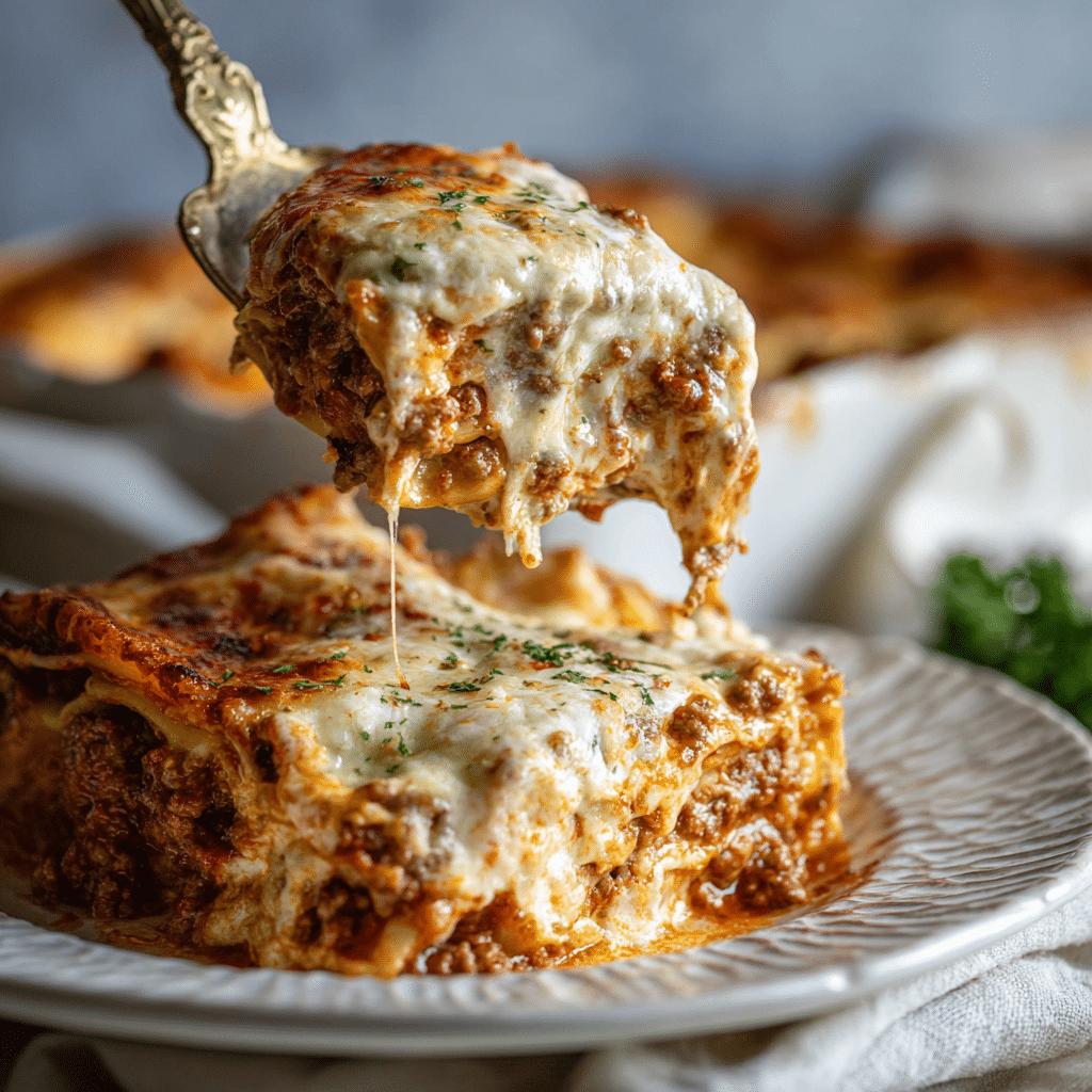 This Homemade Beef Lasagna is layered with rich slow-simmered beef sauce, creamy Parmesan béchamel, tender pasta sheets, and melted mozzarella. Perfect for family dinners and special occasions.