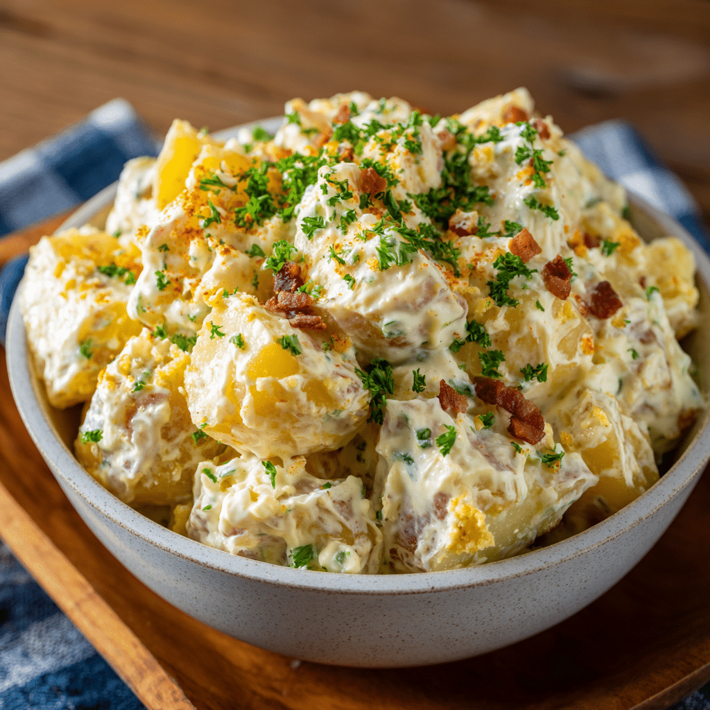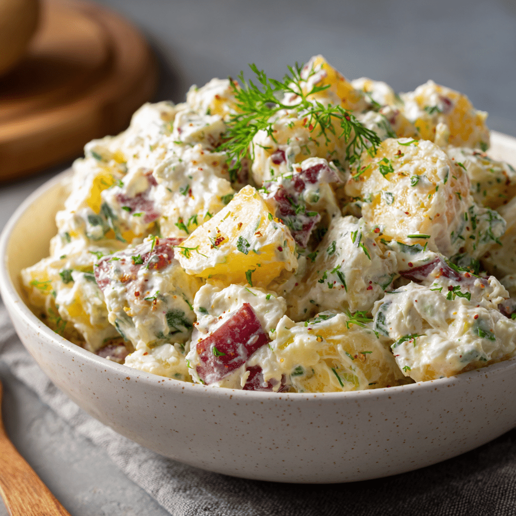 This Homemade Potato Salad Recipe is creamy, classic, and perfect for family gatherings, barbecues, or holiday meals. Made with tender potatoes, eggs, mayonnaise, mustard, and fresh herbs, this easy potato salad delivers rich flavor and comforting texture in every bite.