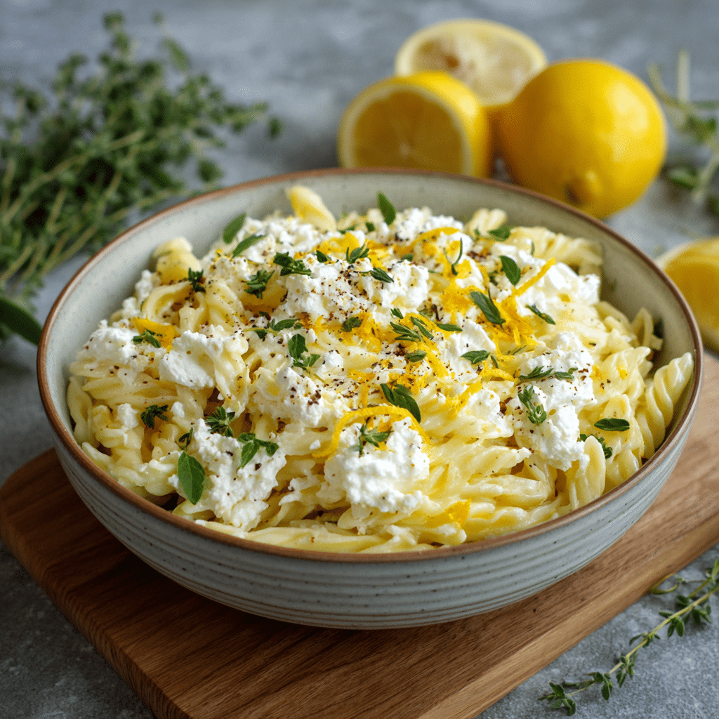 Lemon Pasta with Ricotta is a creamy, fresh, and comforting vegetarian pasta recipe made with ricotta cheese, fresh lemon zest, olive oil, and Parmesan. Ready in just 20 minutes, this easy pasta dish is perfect for busy weeknights or elegant dinners.