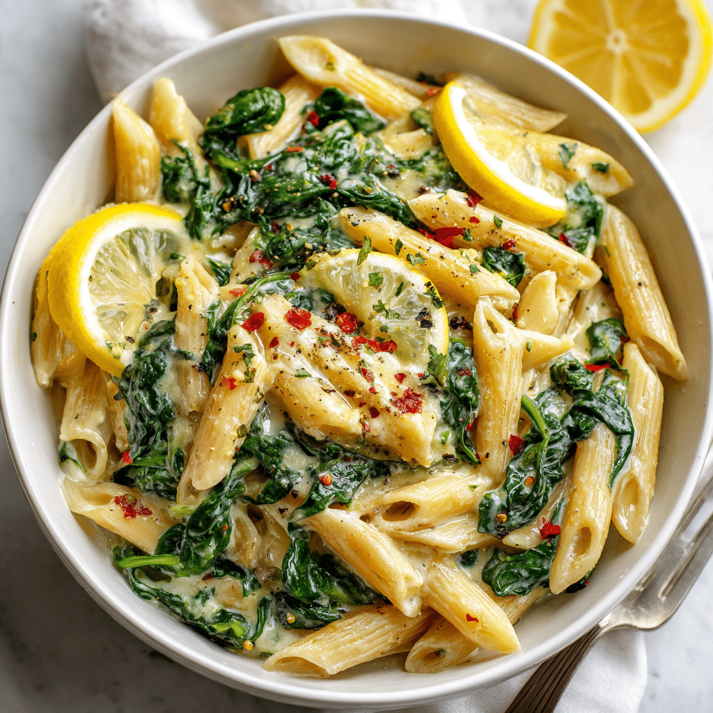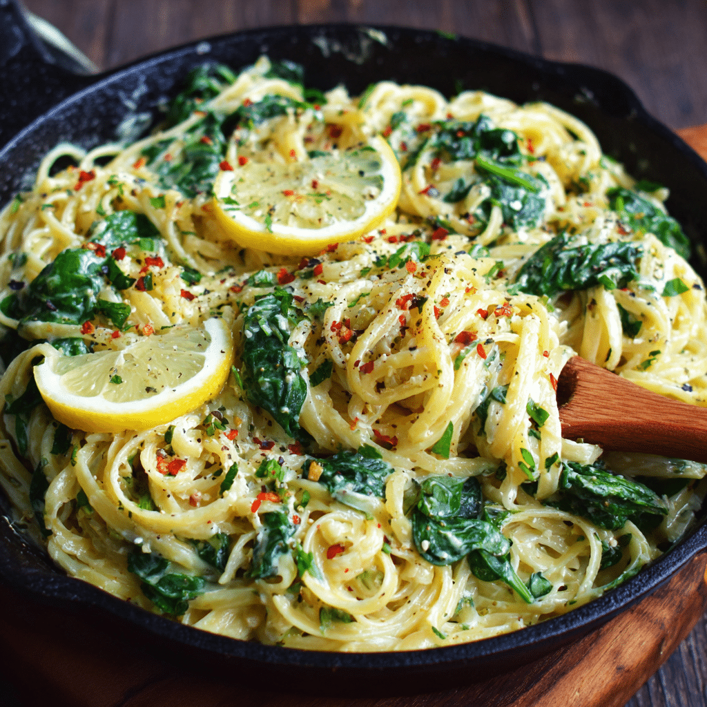 Lemon Pasta with Spinach is a fresh, light, and comforting dish made with spaghetti, olive oil, garlic, fresh spinach, lemon zest, lemon juice, and Parmesan cheese. I cook the pasta until al dente, sauté garlic gently, wilt the spinach, and toss everything together with lemon and reserved pasta water to create a silky sauce. This recipe comes together in under 30 minutes and feels bright yet satisfying. It works perfectly as a quick weeknight dinner or a simple Mediterranean-inspired meal for guests. Serve immediately with extra Parmesan and lemon zest for the best flavor.