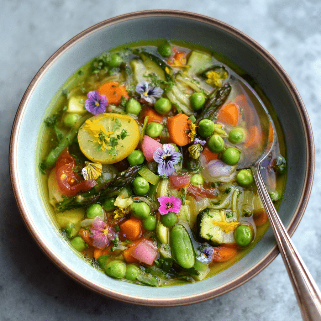 Light Spring Vegetable Soup is a fresh and healthy recipe made with seasonal vegetables like asparagus, zucchini, carrots, and peas simmered in a delicate herb-infused broth. This comforting yet light soup is perfect for spring meals and easy weeknight dinners.