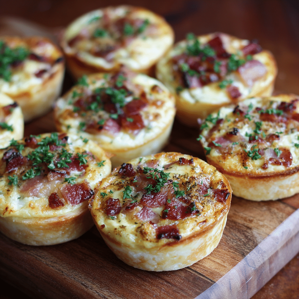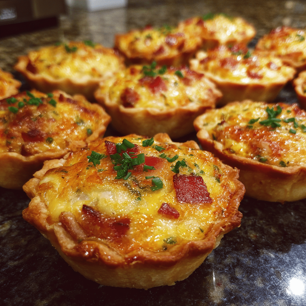 Mini Bacon Quiche are bite-sized savory pastries made with flaky crust, creamy eggs, crispy bacon, and melted cheddar cheese. Perfect for brunch, parties, or meal prep, these easy mini quiches bake quickly and taste delicious warm or at room temperature.