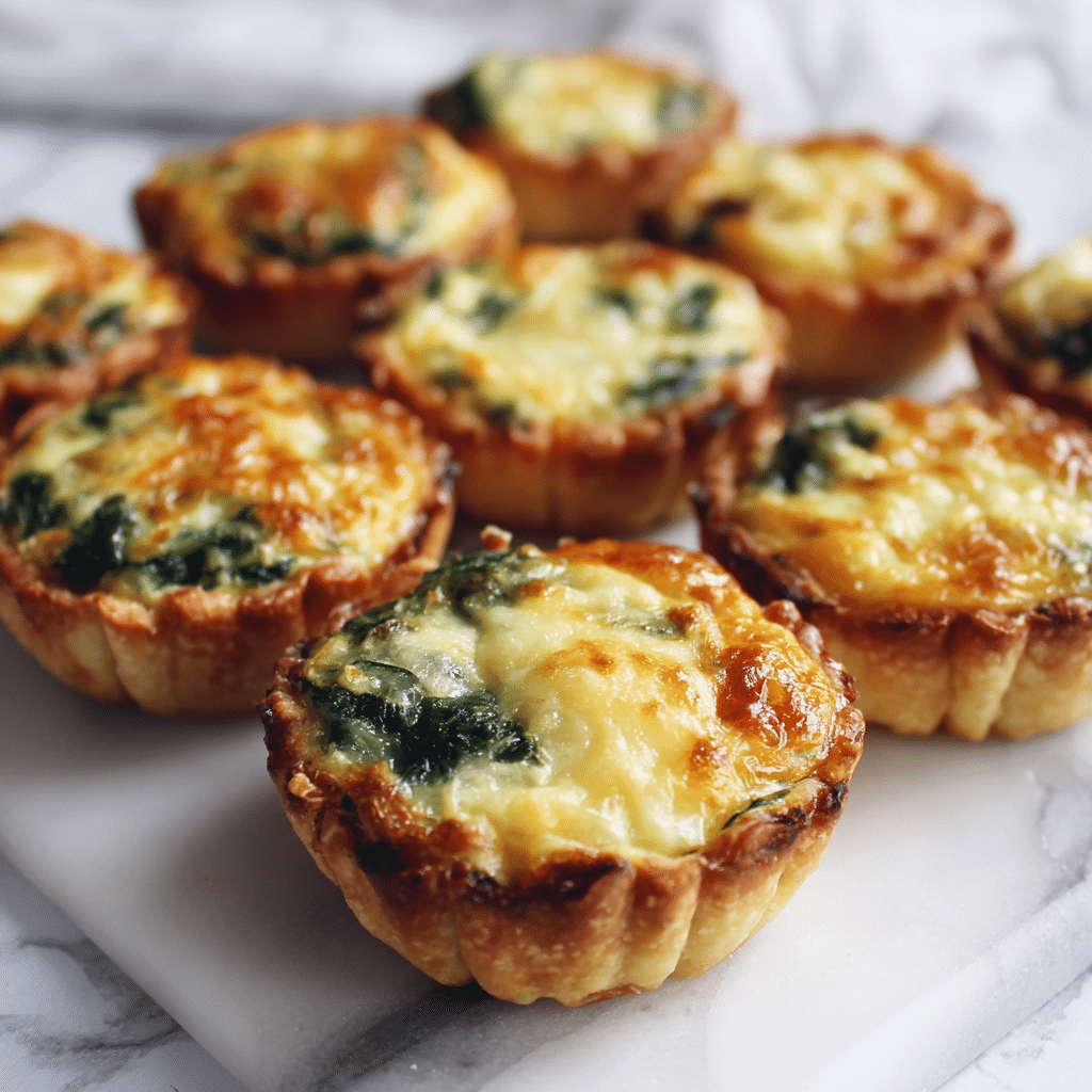 These Mini Spinach Quiche are flaky, bite-sized savory pastries filled with sautéed spinach, eggs, cream, and cheese. Perfect for brunch, parties, or meal prep, these easy mini quiches are elegant, flavorful, and simple to prepare.