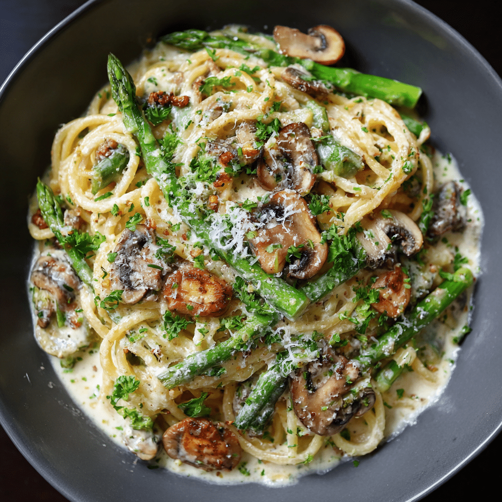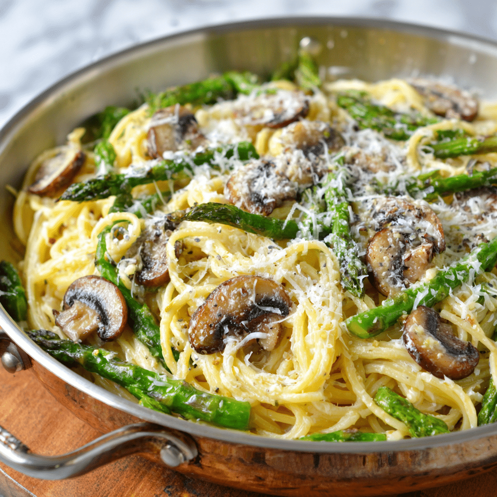 This Parmesan Asparagus Mushroom Pasta is a creamy and comforting dish made with tender asparagus, earthy mushrooms, and rich Parmesan cheese. Perfect for a quick weeknight dinner or a cozy gathering, this flavorful pasta combines fresh seasonal ingredients with a velvety sauce that coats every bite beautifully. Simple to prepare yet elegant enough to impress, this recipe brings warmth and satisfaction to your table.