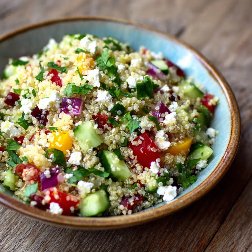The first time I made quinoa salad with feta, I stood barefoot in my kitchen, chopping vegetables without any plan. I had quinoa sitting in the pantry, some fresh cucumbers and tomatoes, and a block of feta waiting in the fridge. I tossed everything together, added olive oil and lemon, and suddenly, something magical happened. It tasted like sunshine.