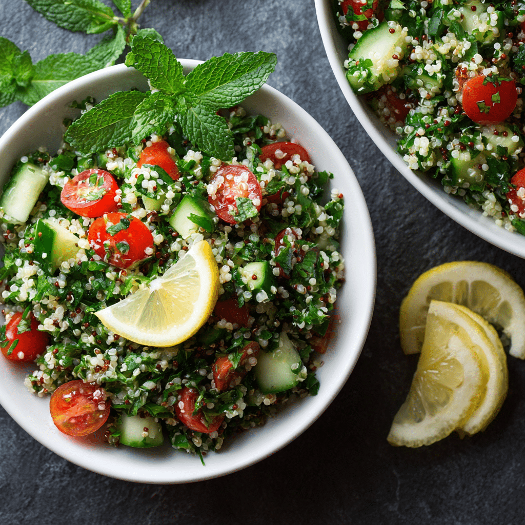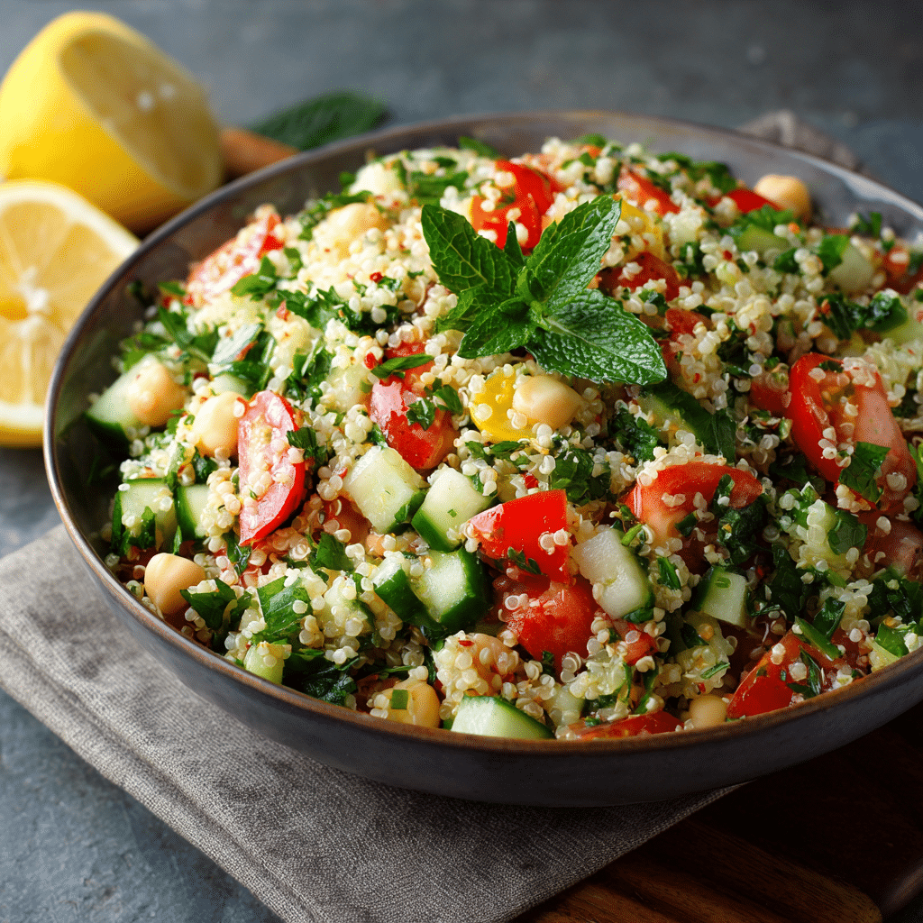 This Quinoa Tabbouleh is a fresh and healthy Mediterranean salad made with fluffy quinoa, parsley, mint, tomatoes, cucumber, and a bright lemon olive oil dressing. Light, nutritious, and easy to prepare, this vegetarian dish is perfect for meal prep, picnics, or as a refreshing side for grilled dishes.