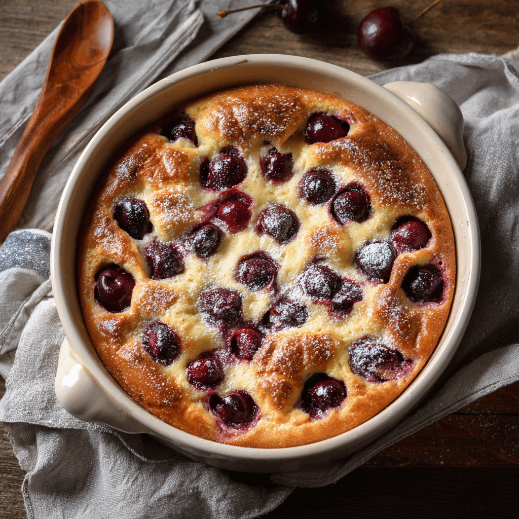 Use ripe, sweet cherries for the best flavor. If fresh cherries are unavailable, frozen cherries (thawed and drained) work well. Avoid overmixing the batter to keep the texture light and custardy. Store leftovers covered in the refrigerator for up to 3 days and reheat gently in the oven at 160°C (320°F). Serve slightly warm for the best taste and texture.