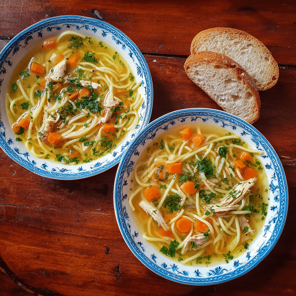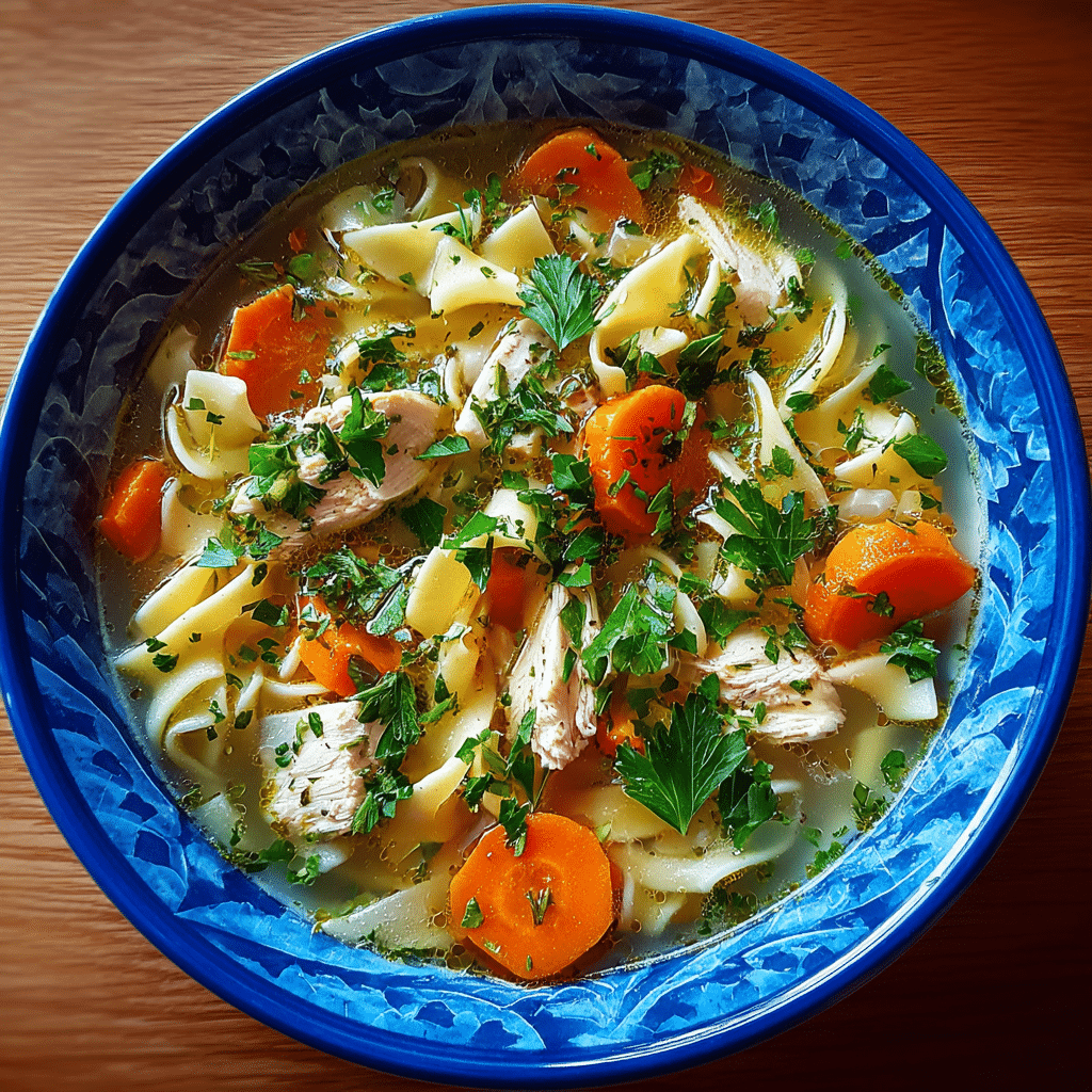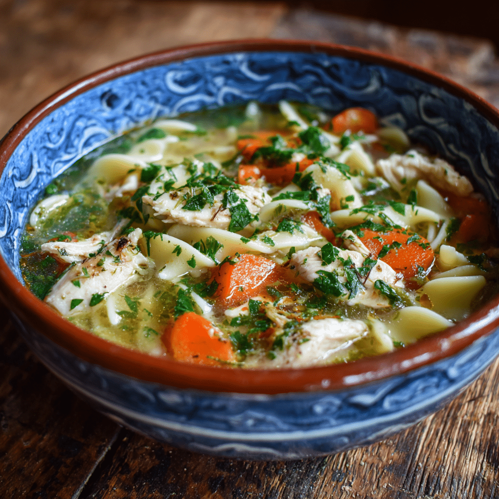 For best results, cook noodles separately if storing leftovers. Use bone-in chicken for deeper flavor. Freeze soup without noodles for up to 2 months.