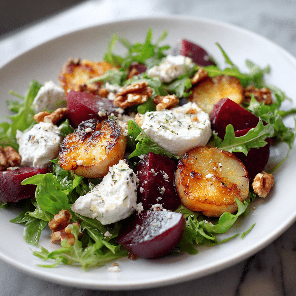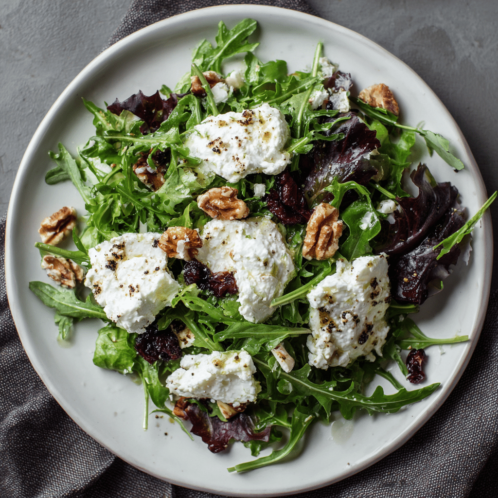 I make Simple Goat Cheese Salad when I want something fresh, quick, and comforting. I toss crisp greens with soft goat cheese and drizzle everything with a light dressing made from olive oil, lemon juice, and a touch of honey. The goat cheese adds a creamy tang, while the dressing keeps everything bright and balanced. I serve it immediately, sometimes with warm bread on the side. This salad feels simple but satisfying, perfect for a light meal or a gentle pause in a busy day.