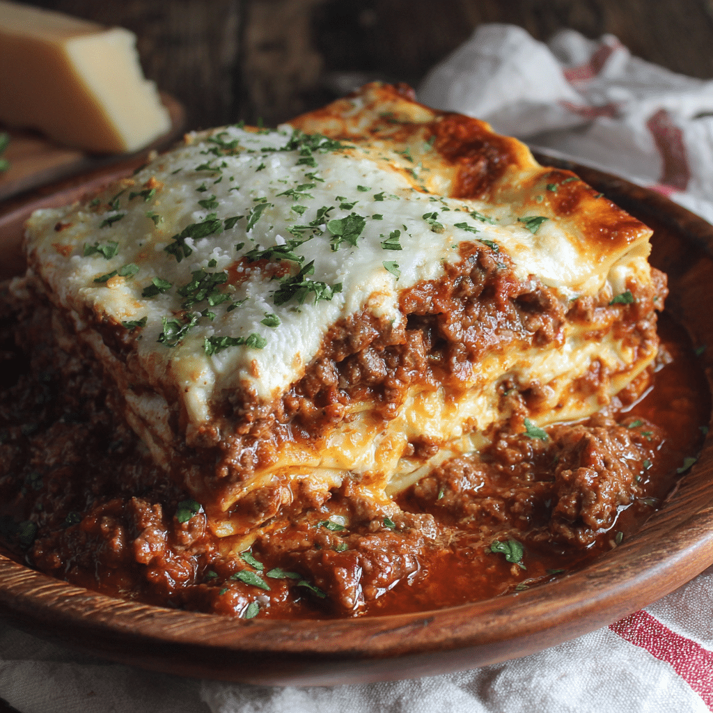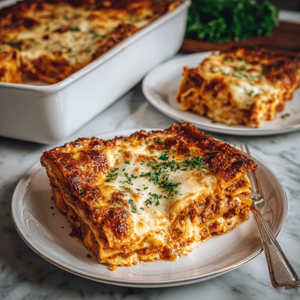 This Simple Lasagna Recipe features layers of rich beef tomato sauce, creamy homemade béchamel, tender pasta sheets, and melted mozzarella cheese. It’s a classic comfort food dish perfect for family dinners, gatherings, and make-ahead meals.