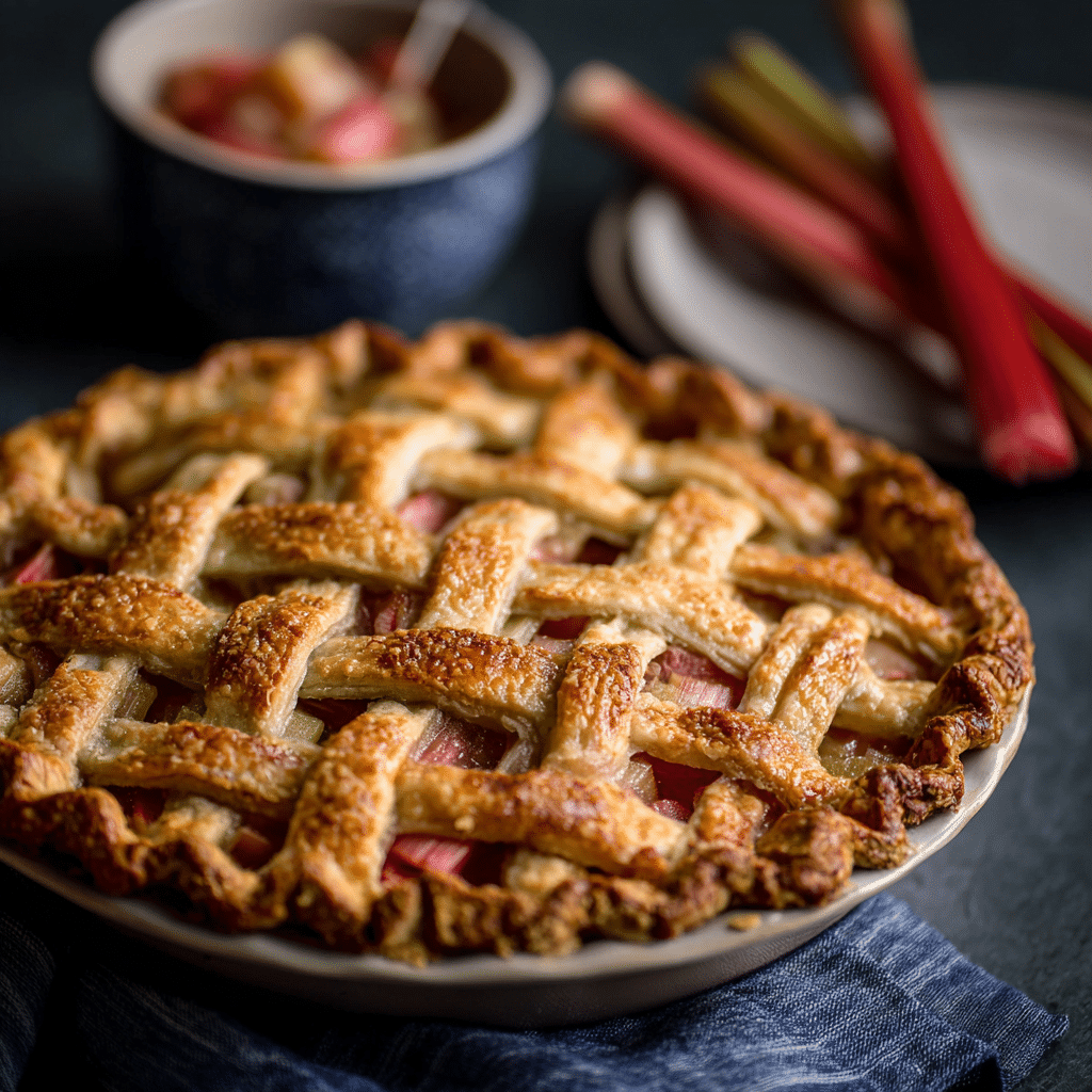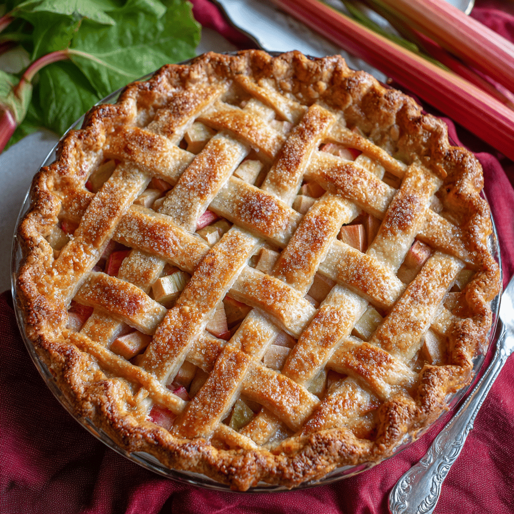 Use fresh rhubarb for best texture. Let pie cool fully to thicken filling. Sprinkle sugar on crust for extra crunch.