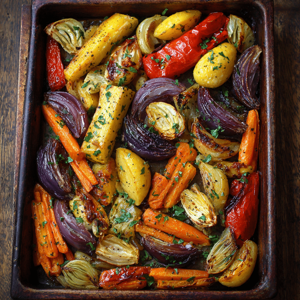 Use seasonal vegetables for best flavor. Do not overcrowd the tray. Store leftovers in the fridge and reheat in the oven.