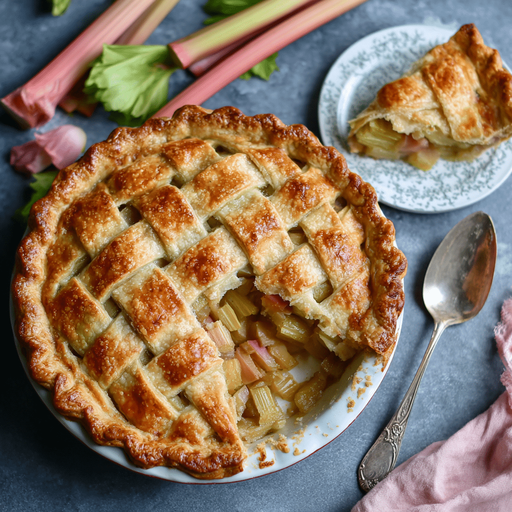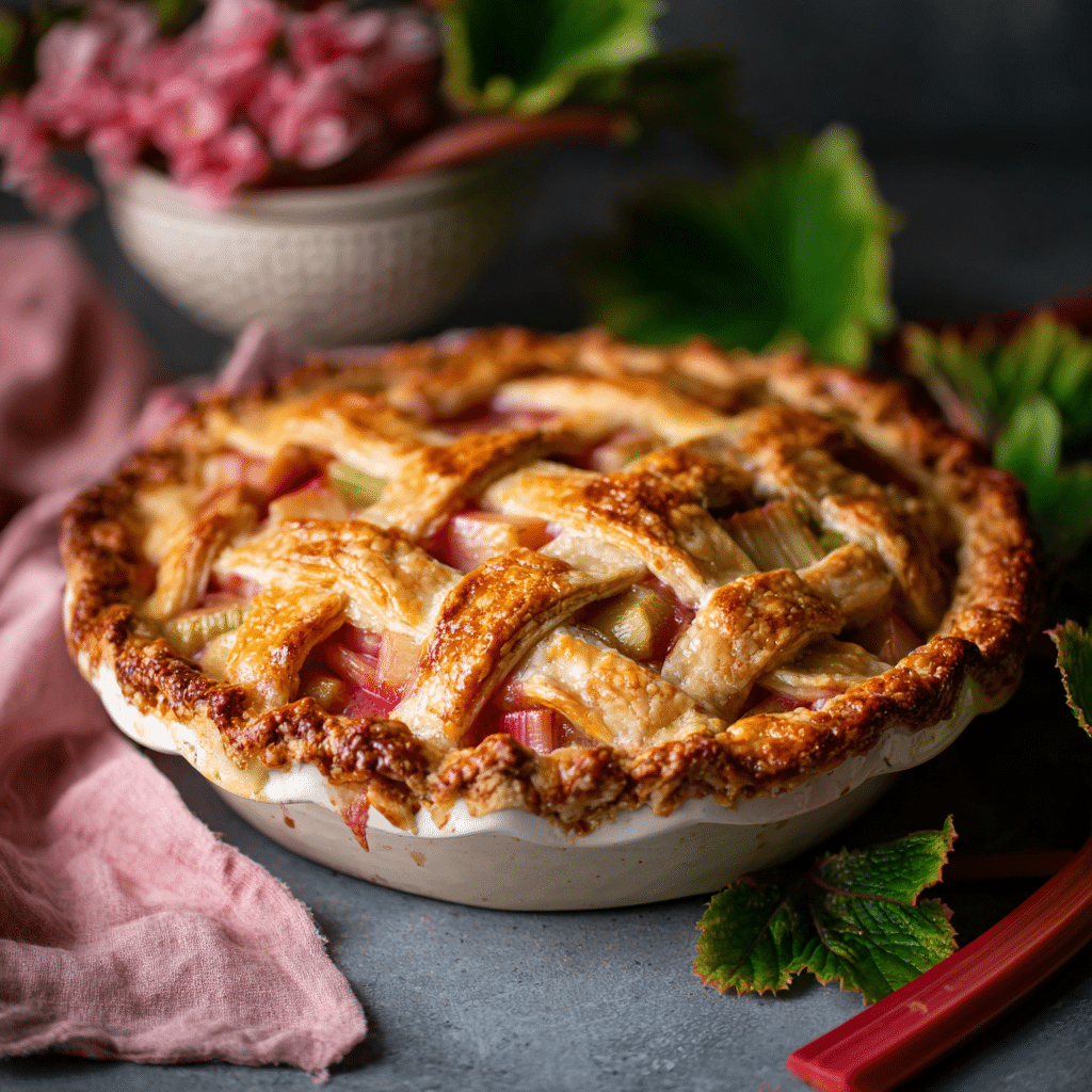 This spring rhubarb pie recipe features a flaky homemade crust filled with sweet and tangy fresh rhubarb. Baked until golden and bubbling, this seasonal dessert is perfect for spring gatherings and family dinners.