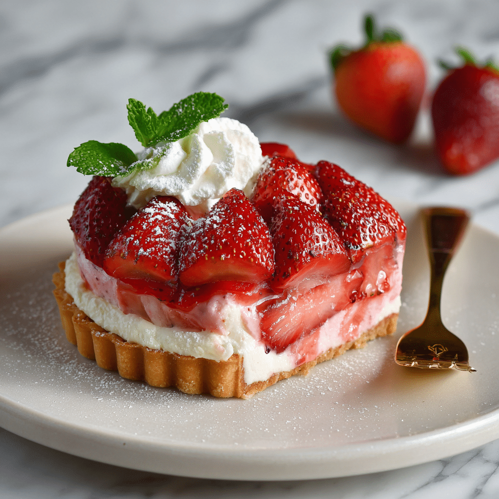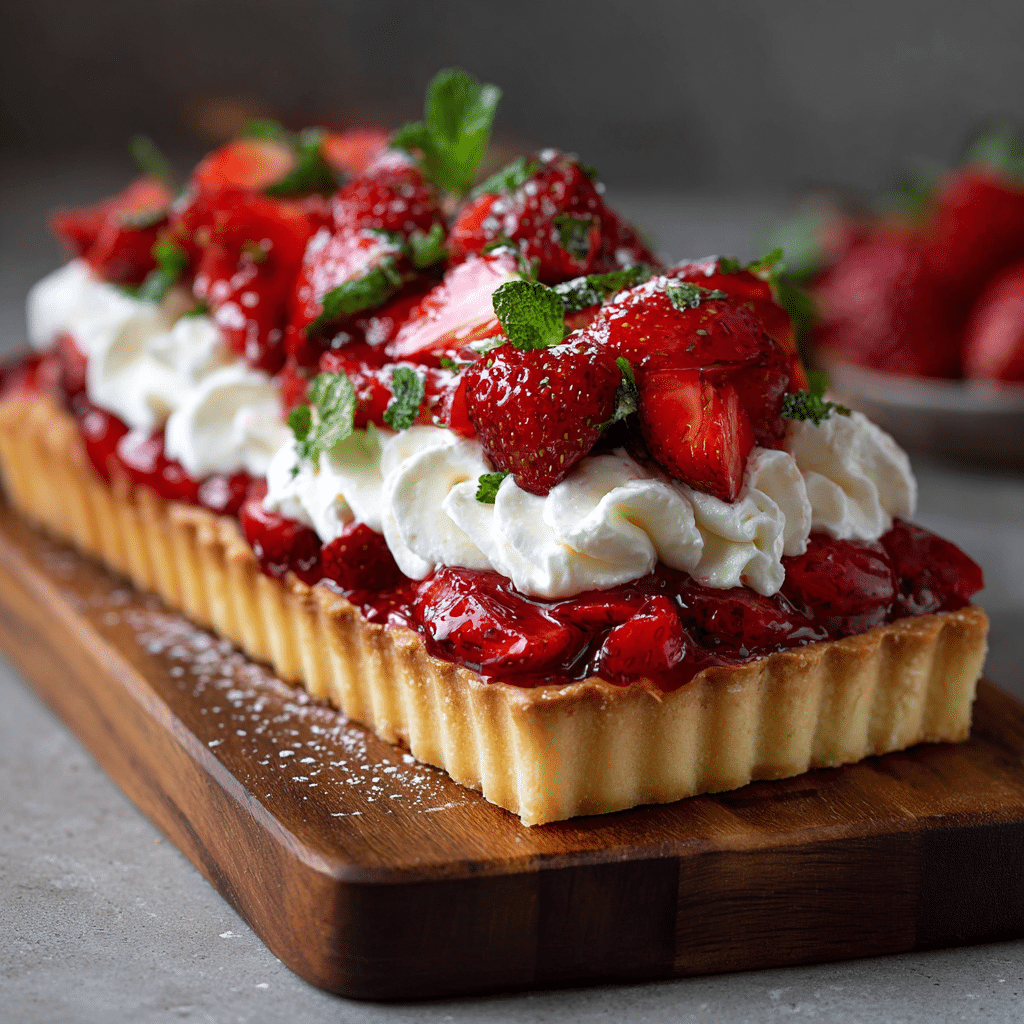 I prepare a buttery tart crust and bake it until golden. I make a smooth vanilla custard using milk, egg yolks, sugar, and cornstarch. After cooling, I spread the cream into the crust and top it with fresh strawberries. I brush the fruit with warm apricot glaze for shine. I chill the Strawberry Cream Tart before slicing. This dessert tastes fresh, creamy, and lightly sweet. It looks elegant but feels comforting and homemade.