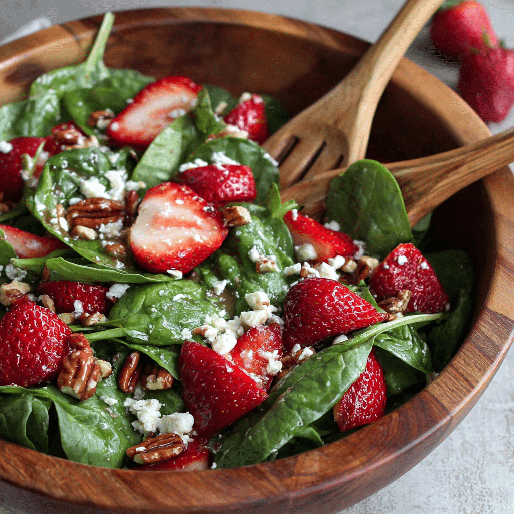 This Strawberry Spinach Salad with Dressing is a fresh and vibrant dish made with tender baby spinach, sweet strawberries, crunchy nuts, and creamy feta cheese. A simple homemade balsamic honey dressing ties all the flavors together beautifully. Perfect for spring and summer meals, this salad is light, healthy, and incredibly easy to prepare.