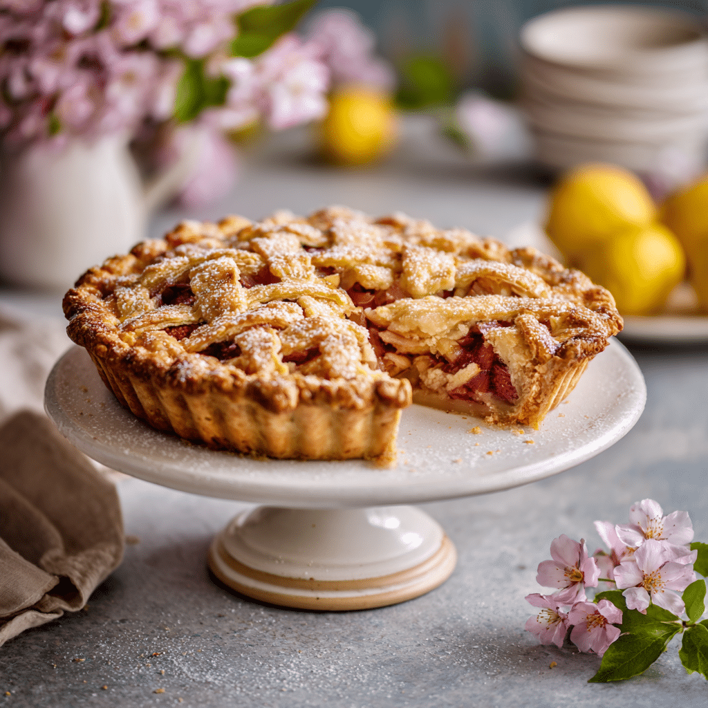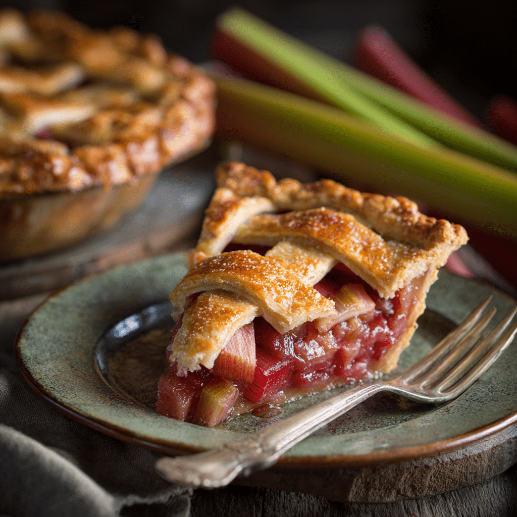 Allow pie to cool fully for clean slices. Adjust sugar depending on rhubarb tartness. Store at room temperature for 2 days or refrigerate up to 4 days.