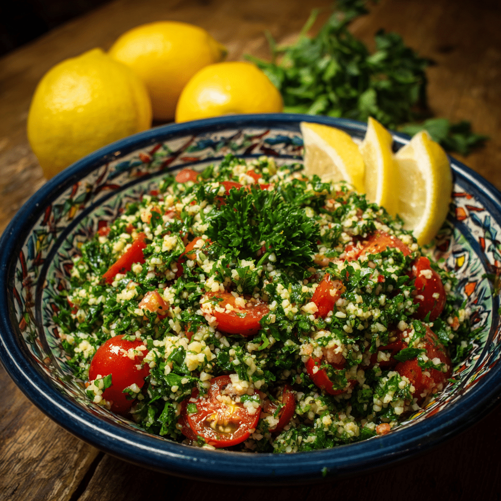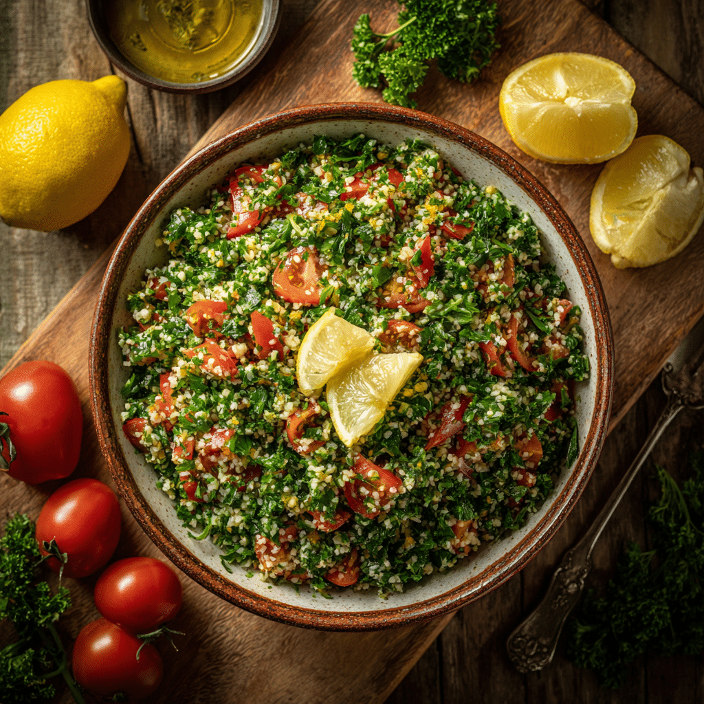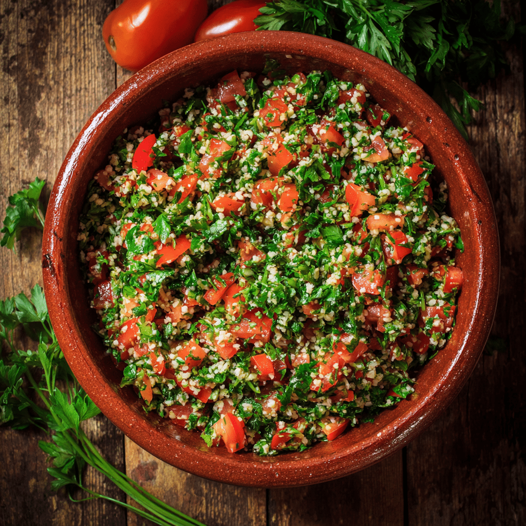 Tomato and Parsley Tabbouleh is a fresh Mediterranean salad made with fine bulgur, ripe tomatoes, finely chopped parsley, lemon juice, and olive oil. Light, vibrant, and full of flavor, this vegetarian dish pairs beautifully with grilled meats or warm pita bread. Easy to prepare and perfect for warm weather, it tastes even better after resting in the refrigerator. Healthy, refreshing, and simple, this tabbouleh brings brightness and balance to any meal.